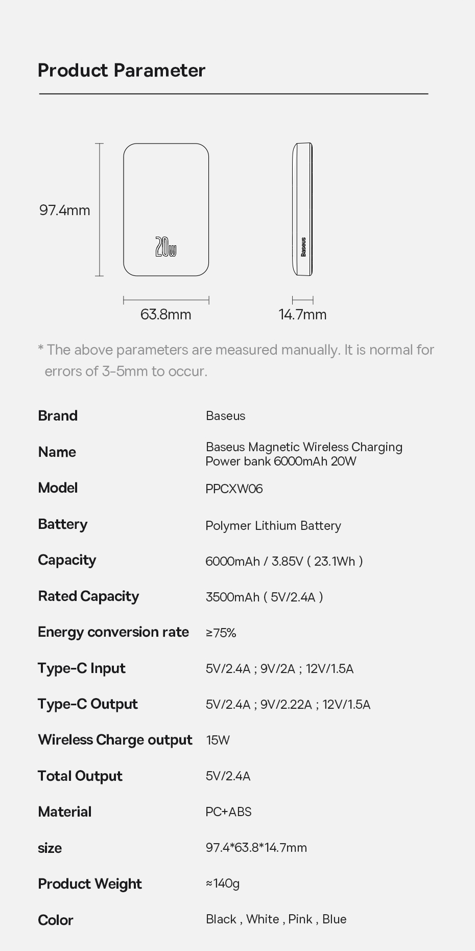Hình Ảnh Pin Dự Phòng Không Dây Tích Hợp Nam Châm Baseus Magnetic Wireless Charging Power bank 6000mAh 20W (With Baseus Xiaobai series Cable Type-C to Type-C 60W(20V/3A) 50cm)