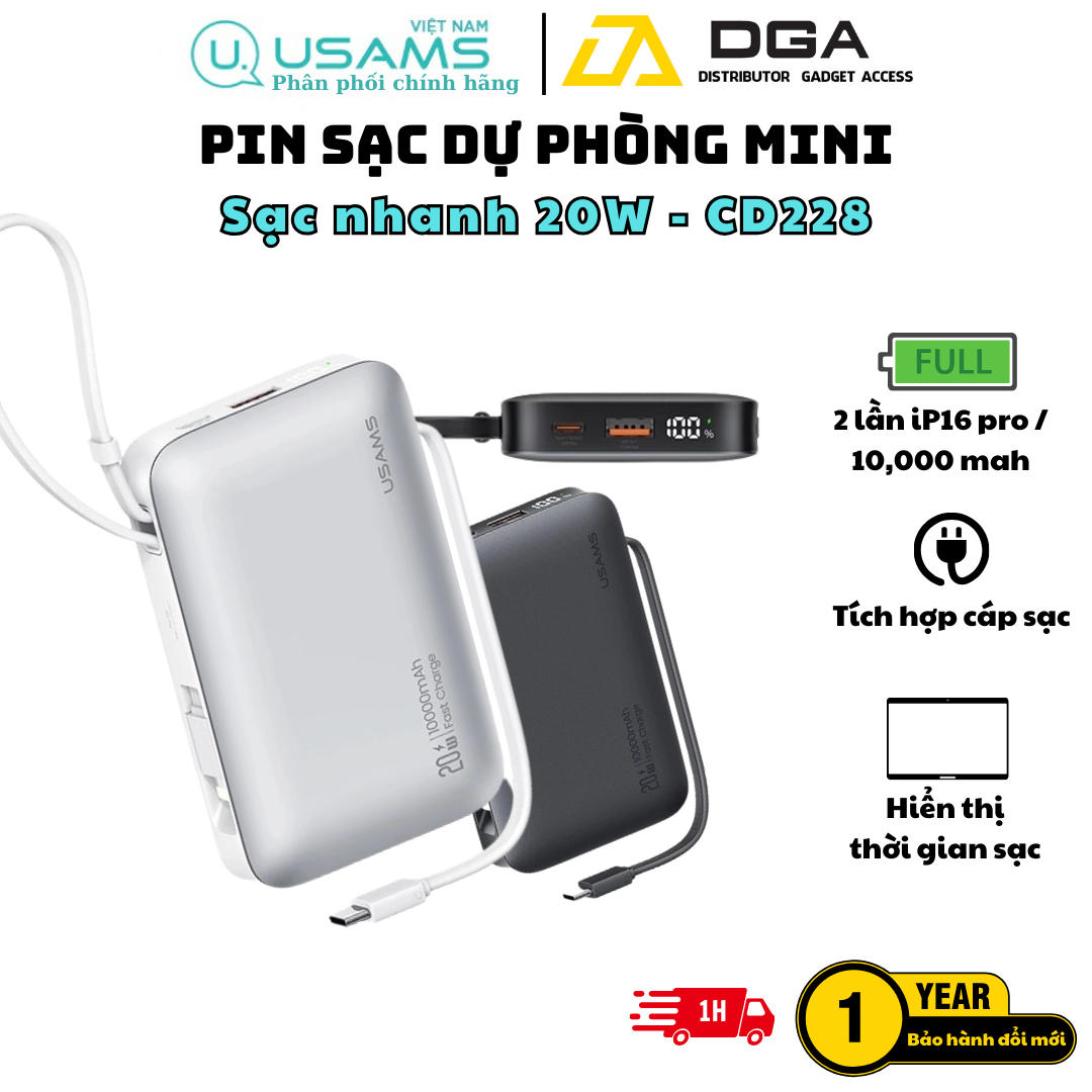Pin sạc dự phòng USAMS CD228 20W Fast Charging Digital Display Power Bank With Type C+Lightning Cables - XR Series 10000mAh là một sự lựa chọn hoàn hảo cho những ai cần một thiết bị sạc nhanh, tiện lợi và an toàn. Với nhiều tính năng vượt trội, sản phẩm này không chỉ giúp bạn duy trì năng lượng cho các thiết bị điện tử mà còn mang lại sự tiện ích và thoải mái trong cuộc sống hàng ngày.