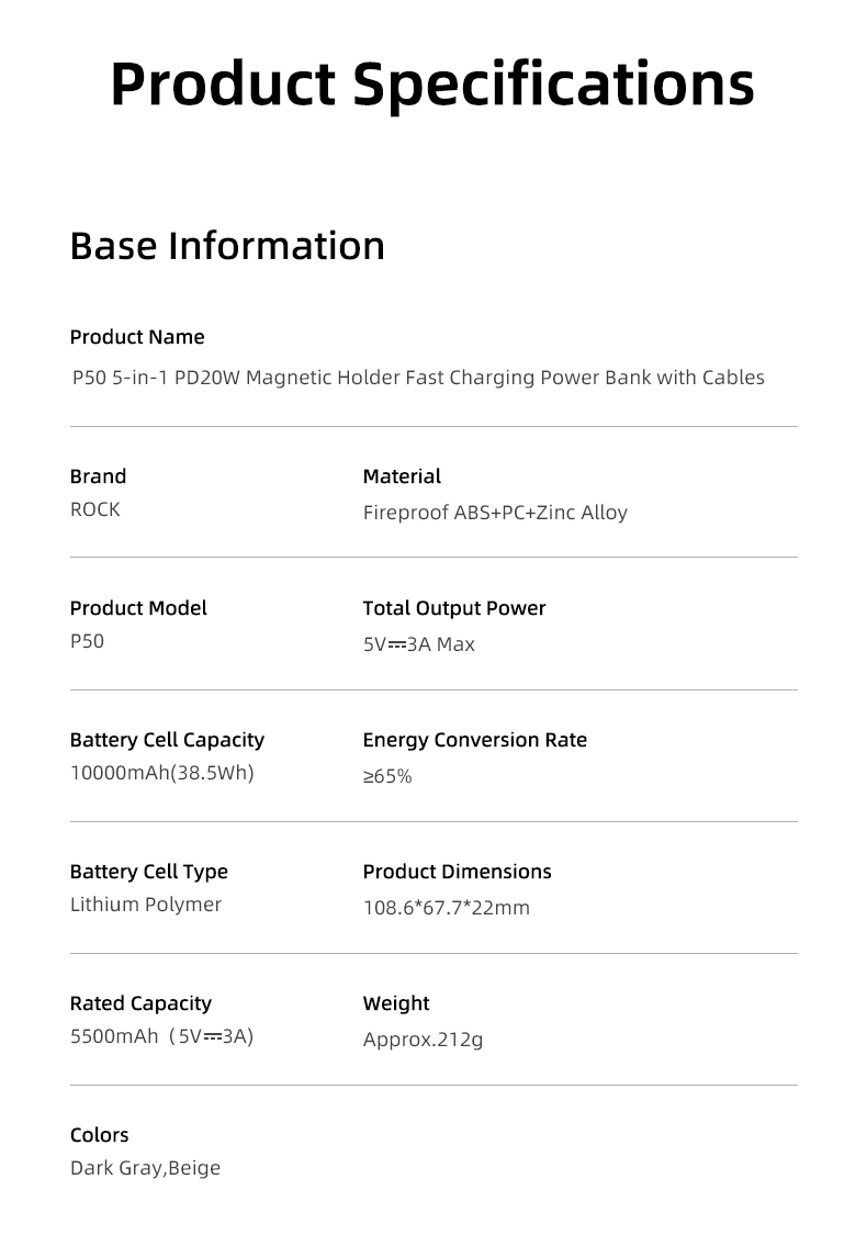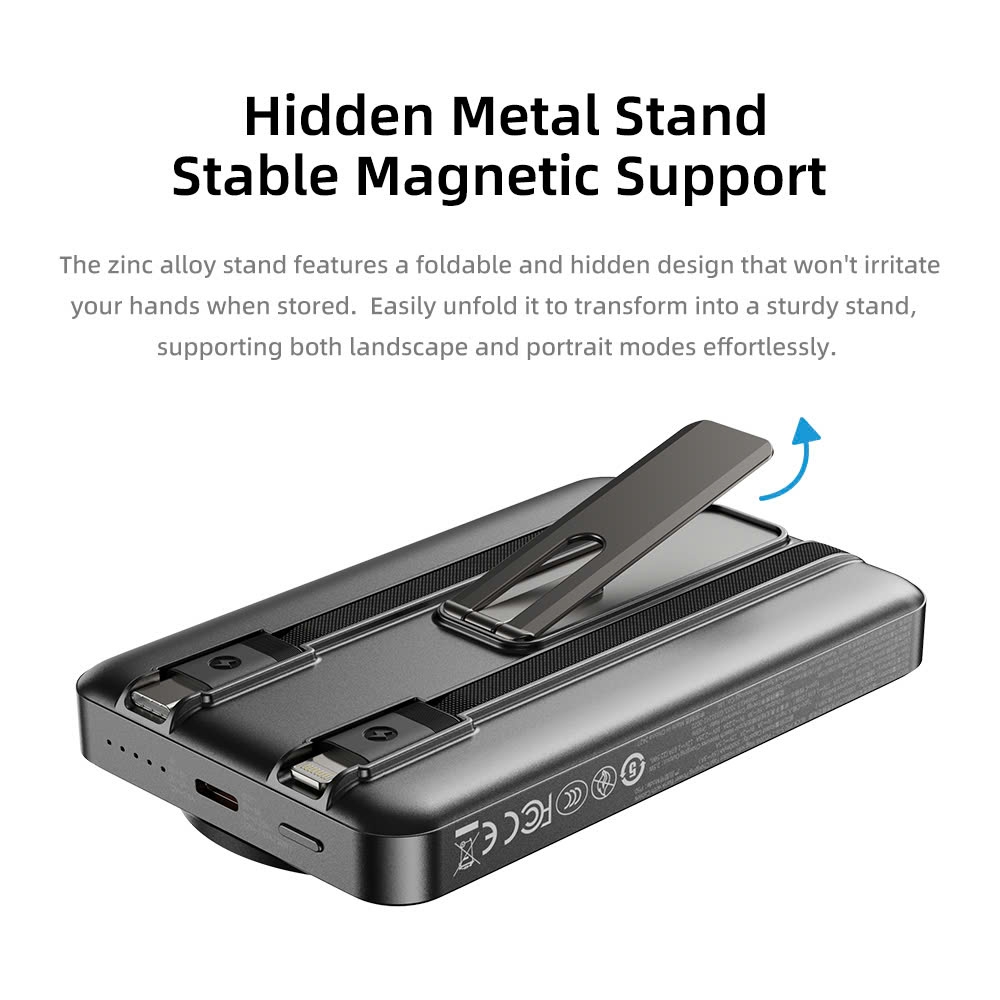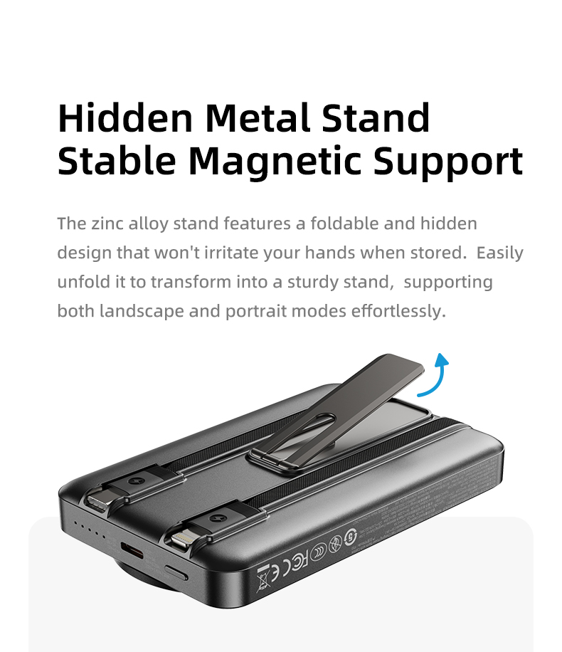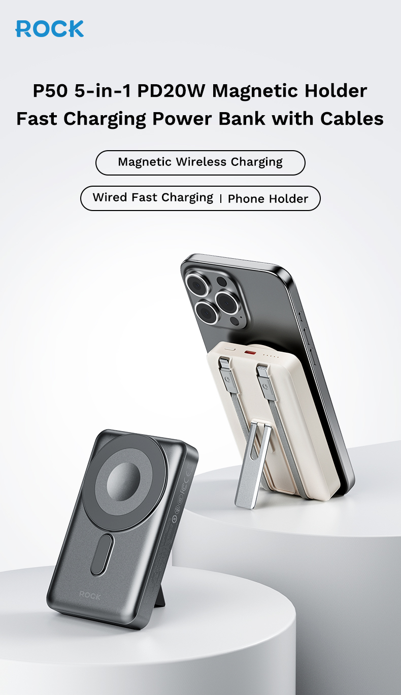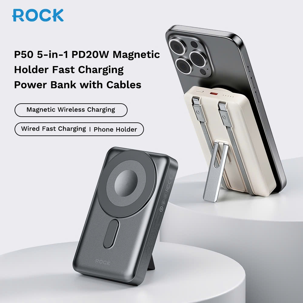 Giới thiệu Pin Sạc Không Dây Nam Châm 5-in-1 ROCK P50 10000mAh 20W (tích hợp chân đế giữ điện thoại)