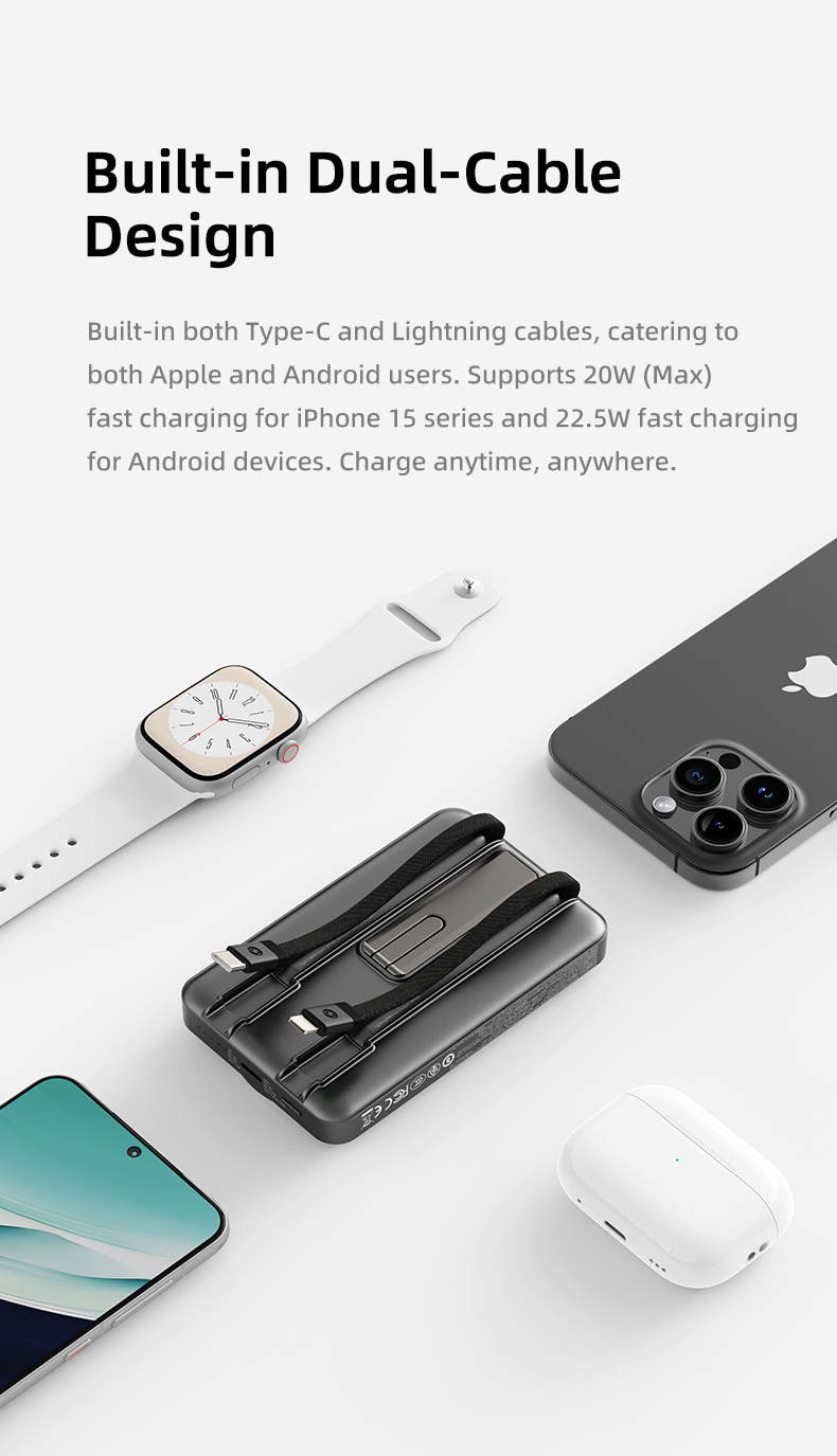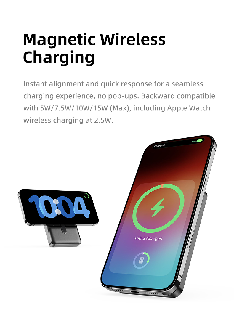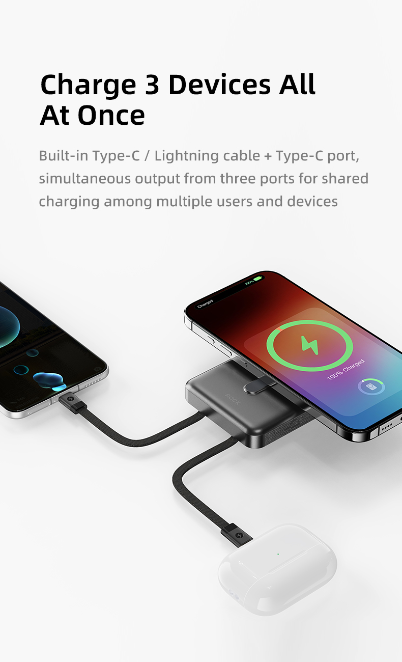 Pin sạc không dây nam châm 5-in-1 ROCK P50 tương thích với hầu hết các thiết bị di động hiện nay, bao gồm iPhone, Samsung, Xiaomi, và các điện thoại Android khác. Với tính năng sạc không dây, bạn có thể sử dụng pin sạc này cho bất kỳ thiết bị hỗ trợ sạc không dây nào, từ điện thoại, máy tính bảng đến các thiết bị như tai nghe Bluetooth.