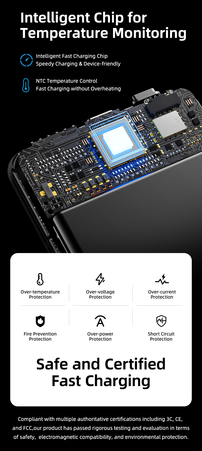 Pin sạc không dây nam châm 5-in-1 ROCK P50 được trang bị hệ thống bảo vệ an toàn, bao gồm các tính năng bảo vệ quá dòng, quá nhiệt và ngắn mạch, giúp đảm bảo an toàn tuyệt đối khi sử dụng. Các tính năng bảo vệ này giúp bạn yên tâm khi sạc thiết bị, không lo xảy ra sự cố như cháy nổ hay hư hỏng thiết bị.