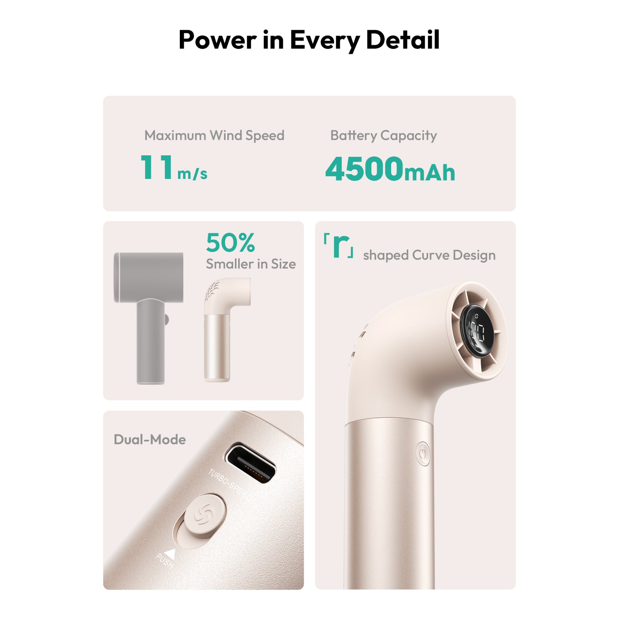 AECOOLY Aero Ultra sở hữu tốc độ quạt đáng kinh ngạc, đạt đến 19000 vòng/phút, một con số chưa từng có ở các dòng quạt cầm tay thông thường.