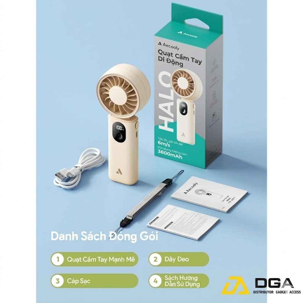 Quạt cầm tay AECOOLY Halo 04 không chỉ là một phụ kiện làm mát, mà là một biểu tượng của lối sống năng động và hiện đại trong năm 2026. Với pin "khủng", gió mạnh và màn hình LED thông minh, sản phẩm đáp ứng hoàn hảo mọi nhu cầu từ ngồi văn phòng đến đi du lịch dã ngoại.