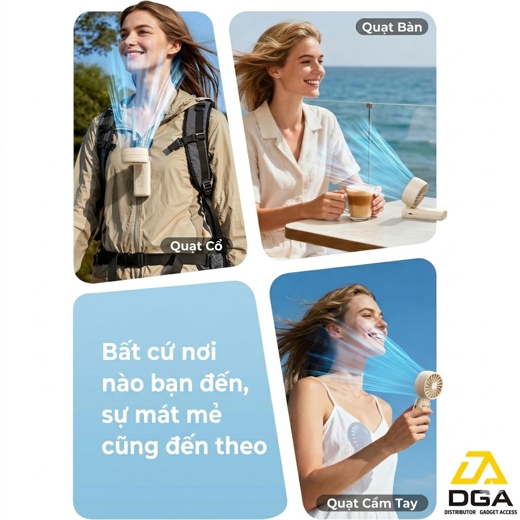 Khi đi tham quan, xếp hàng tại sân bay hay tham gia các hoạt động ngoài trời, cái nóng có thể làm bạn kiệt sức. Thiết kế cầm tay gọn nhẹ, dễ dàng bỏ túi của Halo 04 giúp bạn mang theo hơi mát đến bất cứ đâu. Khả năng thổi xa và mạnh giúp bạn luôn cảm thấy sảng khoái dù đang đứng dưới nắng hè.