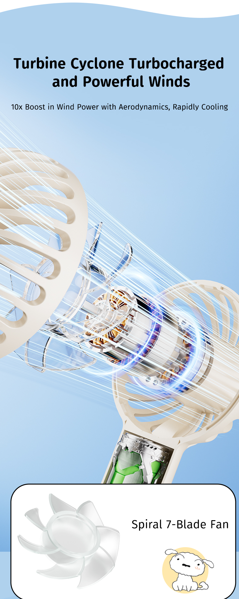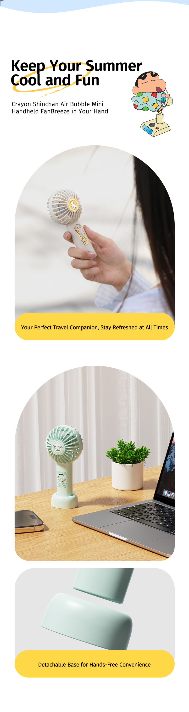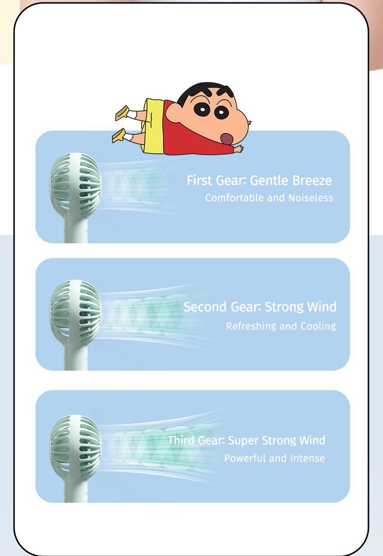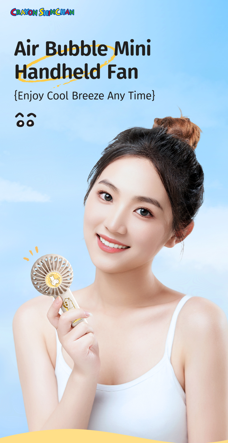 Giới thiệu Quạt Cầm Tay Mini ROCK Crayon Shinchan Air Bubble (3W, 8H, 1200mAh, 3-Speed Power)
