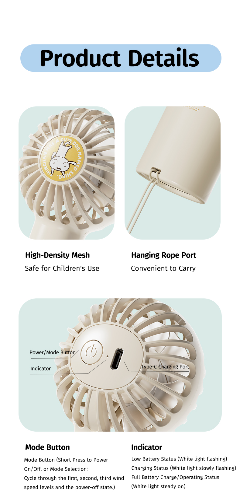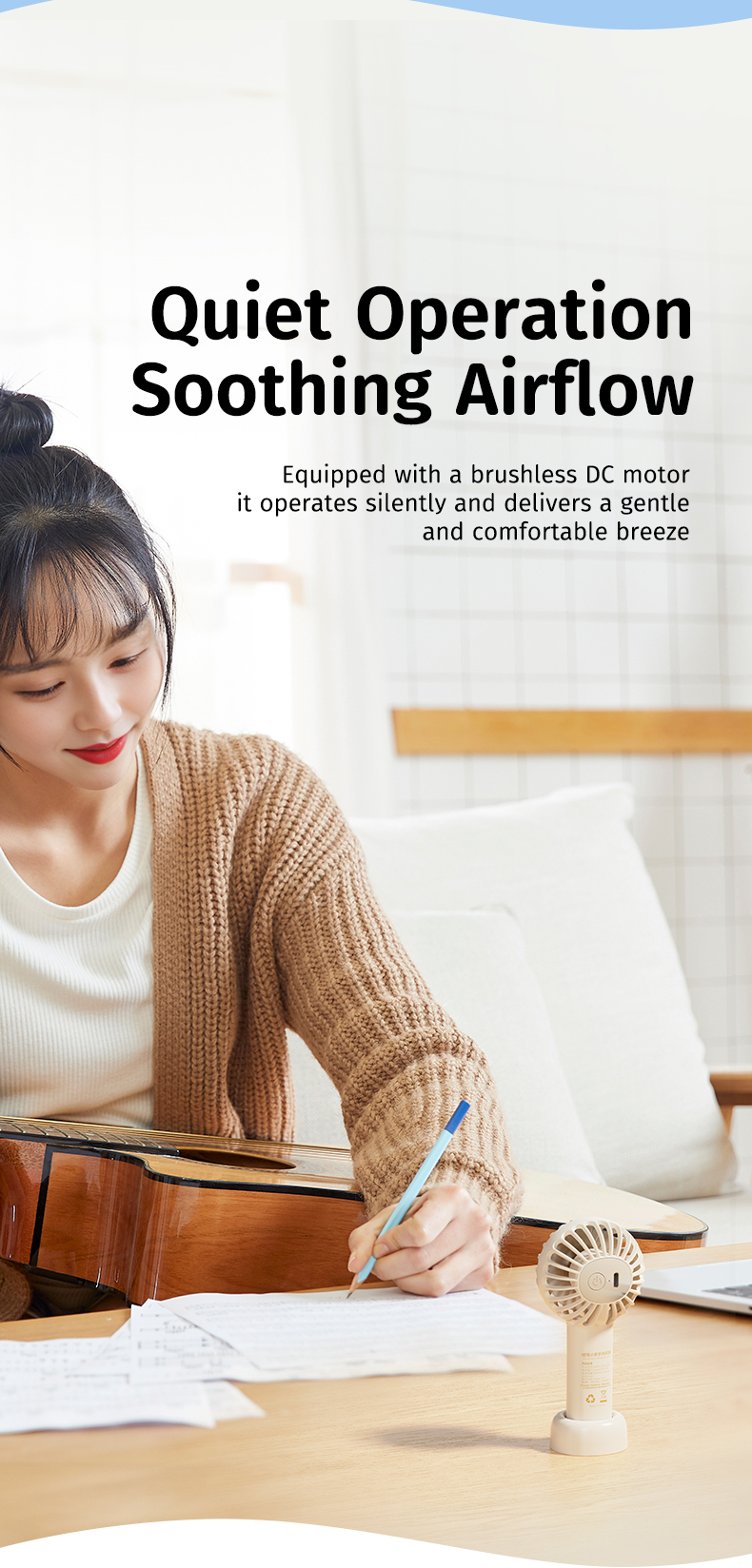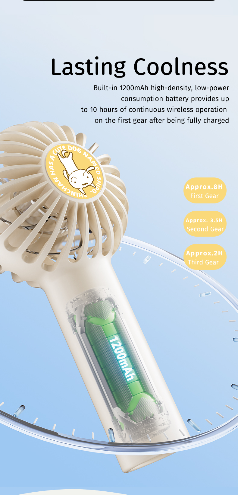 2. Dung lượng pin lớn: Pin 1200mAh cho phép bạn sử dụng quạt liên tục trong nhiều giờ mà không cần lo lắng về việc hết pin.