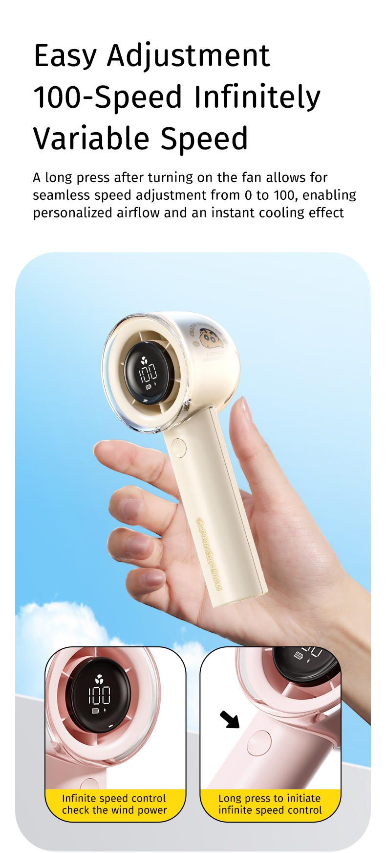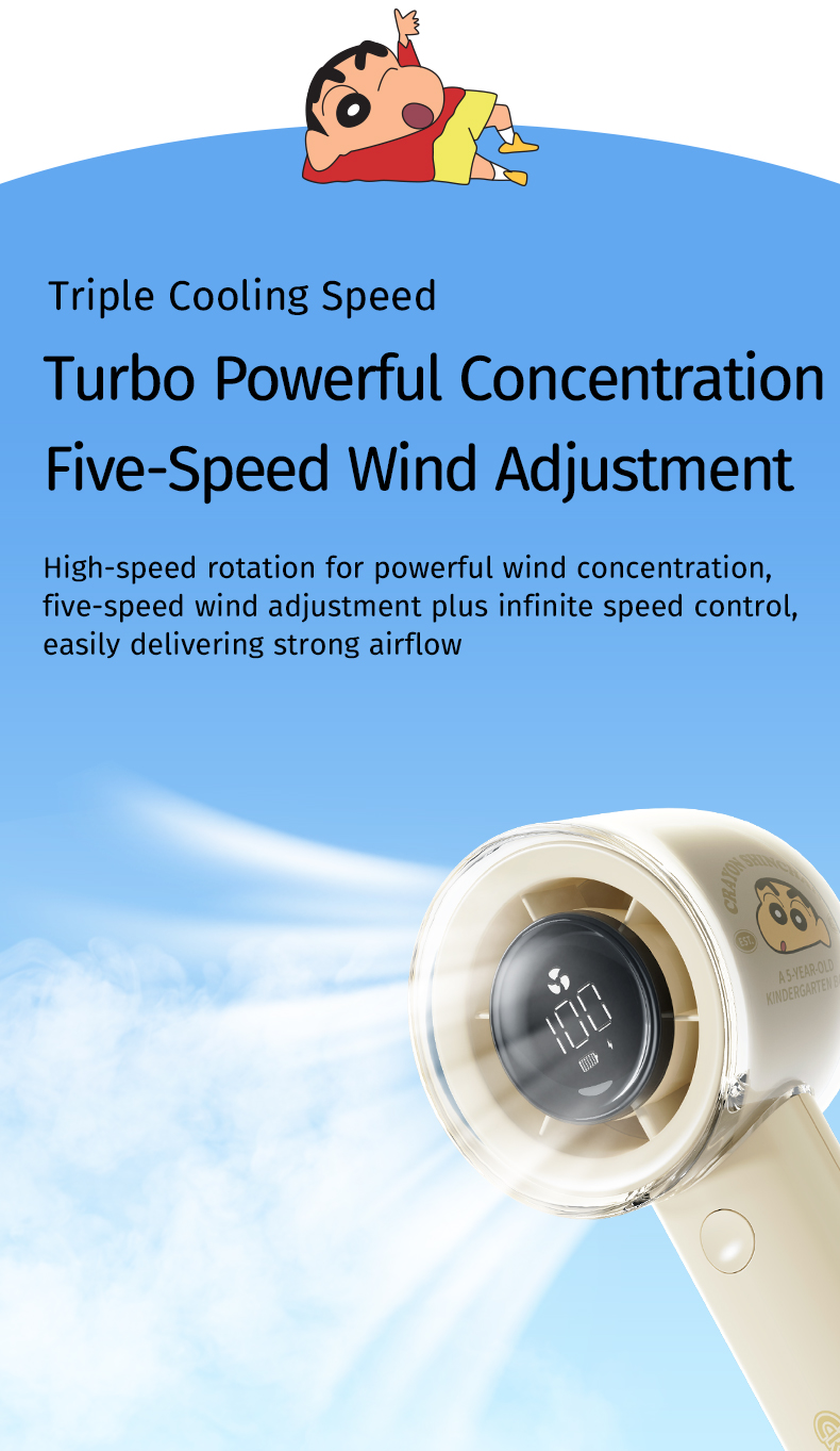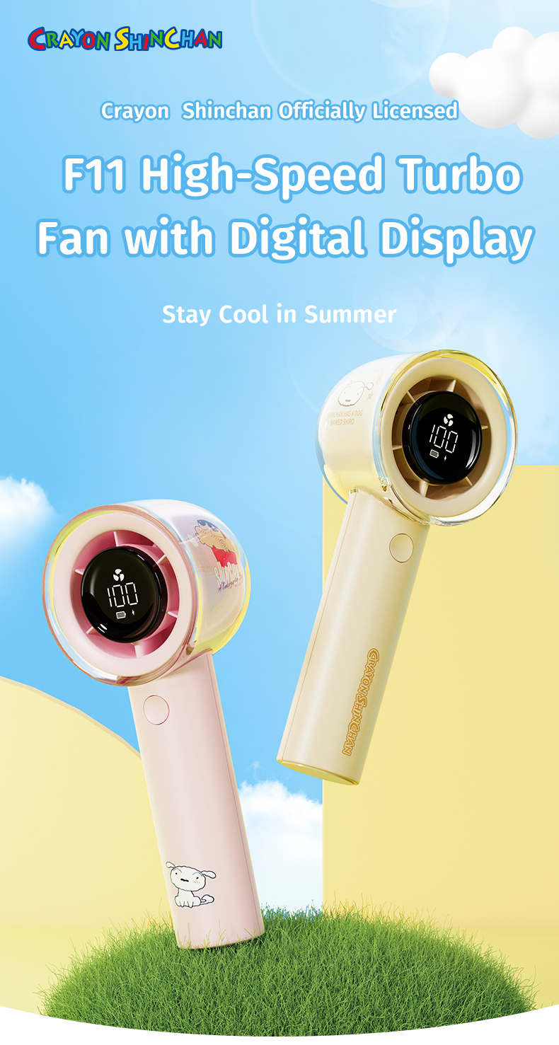 Giới thiệu Quạt Cầm Tay Mini ROCK Crayon Shinchan F11 High-Speed Turbo (16H, 3000mAh, Digital Display)