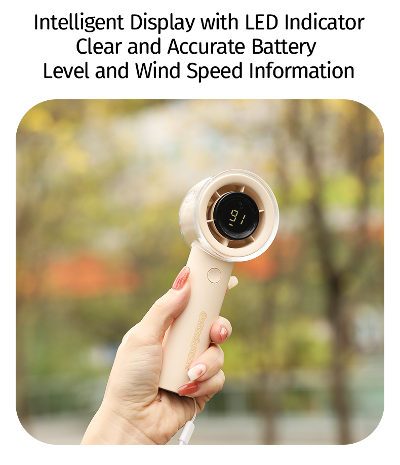 Một điểm nhấn khác biệt của quạt mini ROCK Crayon Shinchan F11 chính là màn hình hiển thị số hóa thông minh. Màn hình này cho phép bạn dễ dàng theo dõi mức pin còn lại cũng như chế độ gió đang sử dụng, giúp bạn chủ động hơn trong việc điều chỉnh và sạc pin khi cần thiết.