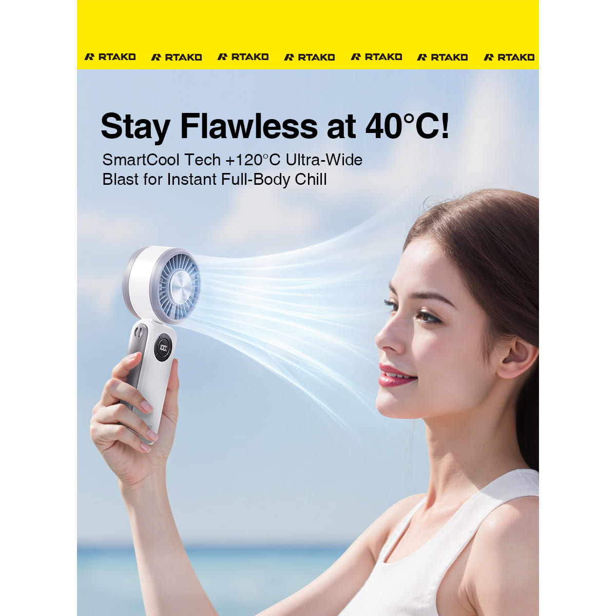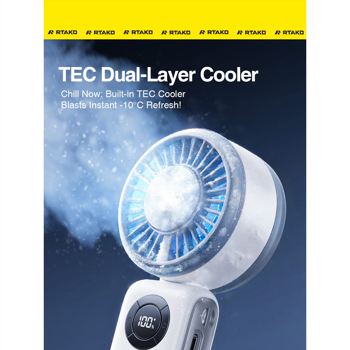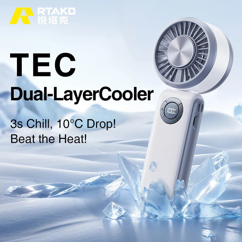 Khác biệt lớn nhất của quạt cầm tay RTAKO T50 so với các dòng quạt mini khác chính là công nghệ làm mát bằng sò lạnh (cooling chip). Chỉ sau 3–5 giây bật máy, vùng tiếp xúc sò lạnh sẽ giảm nhiệt độ tức thì, mang đến cảm giác mát lạnh rõ rệt cho vùng cổ, mặt hoặc tay.