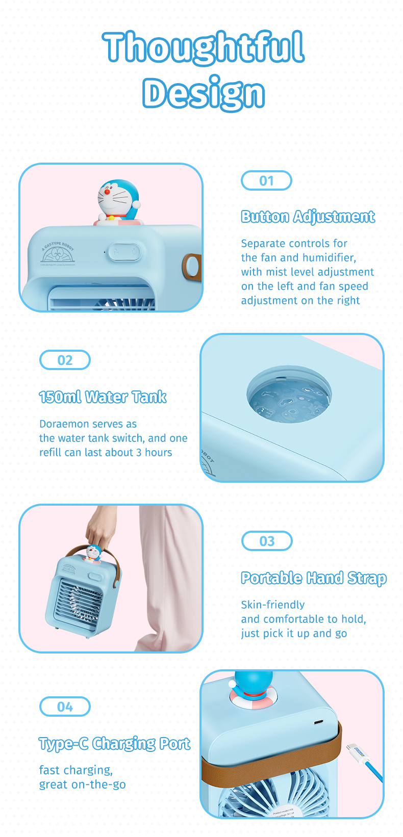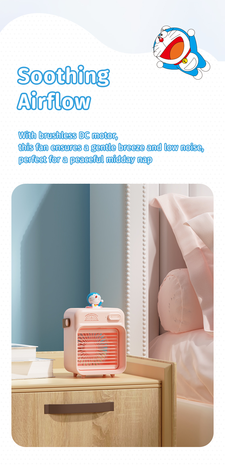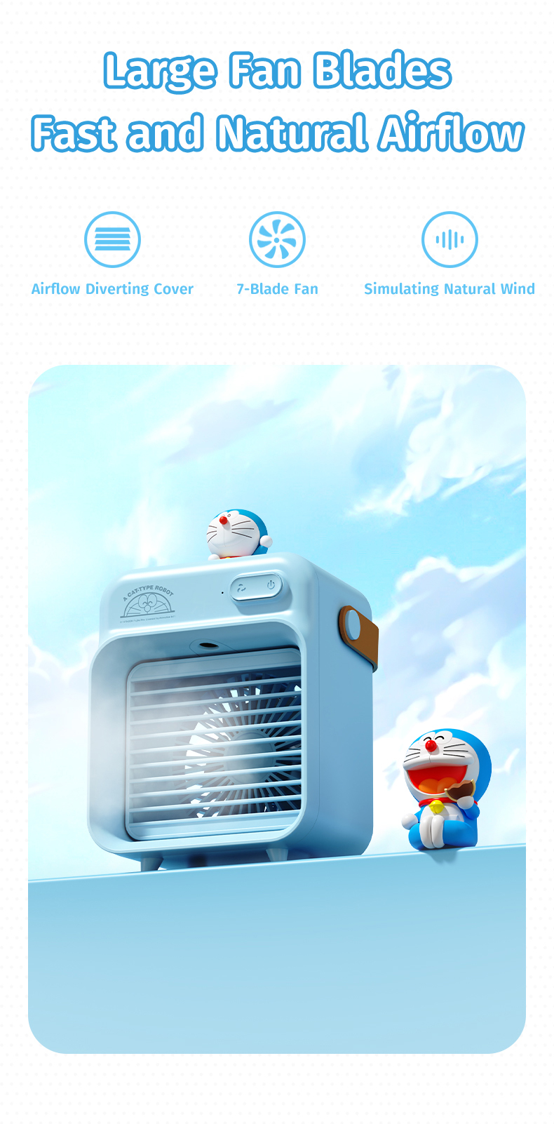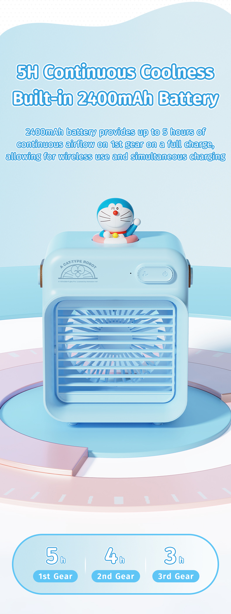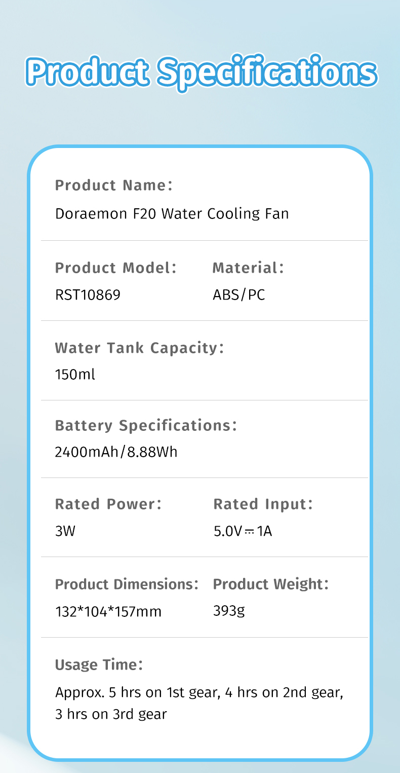 Giới thiệu Quạt Làm Mát Để Bàn ROCK Doraemon F20 Water Cooling (5H, 2400mAh)