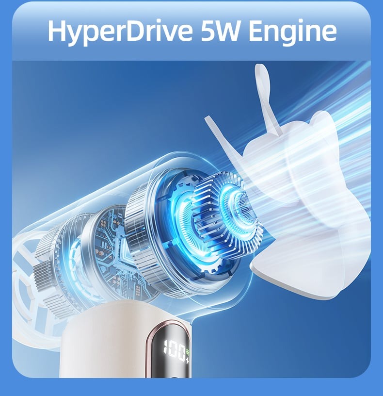 Quạt tích điện cầm tay RTAKO F100 được trang bị động cơ HyperDrive tiên tiến, mang lại hiệu suất hoạt động tối ưu và tiết kiệm năng lượng.