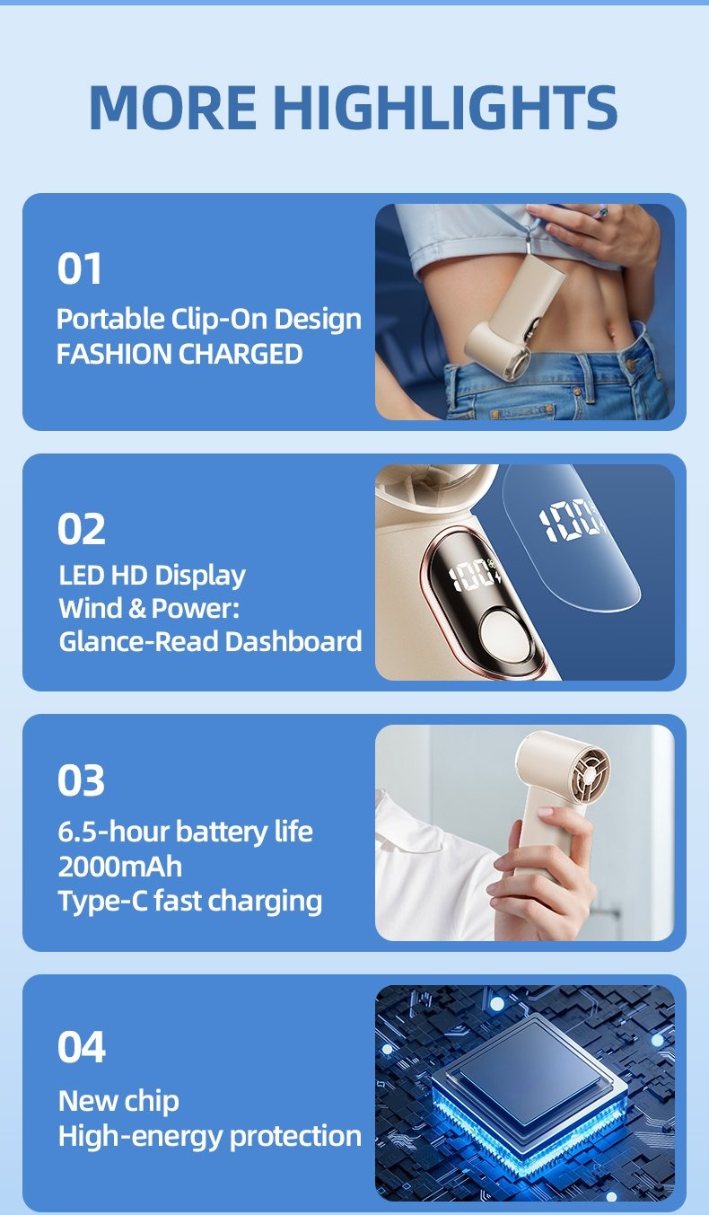 Quạt mini cầm tayPin 2000mAh bền bỉ - "Sử dụng" liên tục, "không gián đoạn" cuộc vui