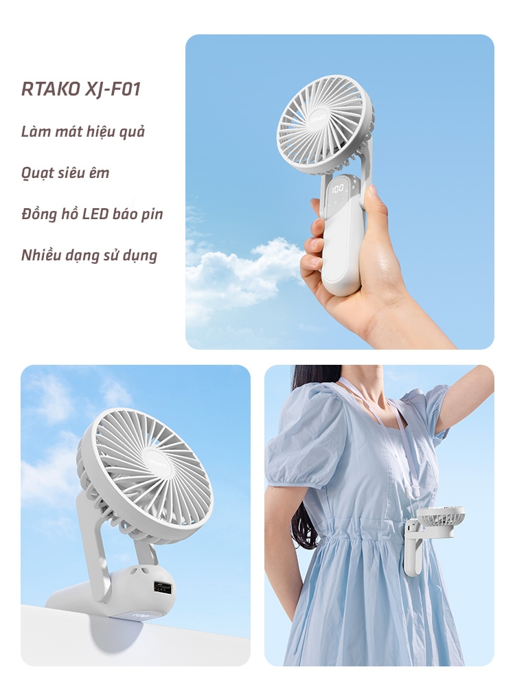 Với kích thước nhỏ gọn và tính năng linh hoạt, quạt RTAKO XJ-F01 là người bạn đồng hành lý tưởng trong mọi tình huống.