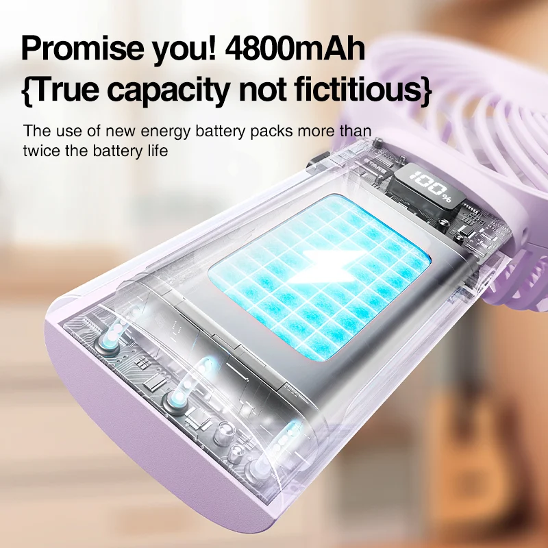 Một trong những điểm cộng đáng chú ý của quạt RTAKO Y20 Foldable Version chính là viên pin 4800mAh siêu bền, cho phép quạt hoạt động liên tục tới 36 giờ (ở mức gió thấp).