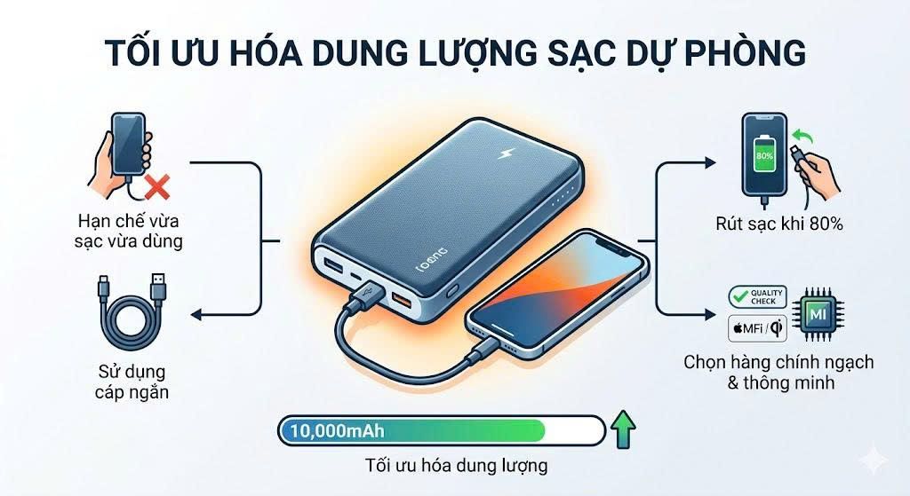 Cách tối ưu hóa dung lượng khi sử dụng sạc dự phòng