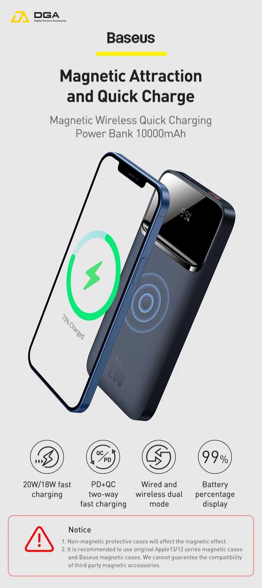 – Pin dự phòng sạc nhanh không dây tích hợp nam châm Baseus Magnetic Wireless Quick Charging Power Bank thật sự là một phụ kiện hoàn hảo dành cho dòng iPhone 12 và cả những smartphone Android/ iPhone khác .
