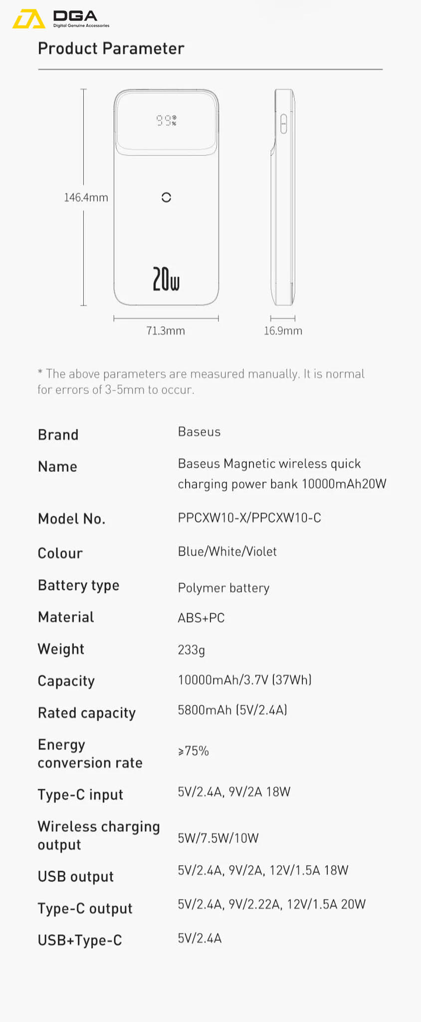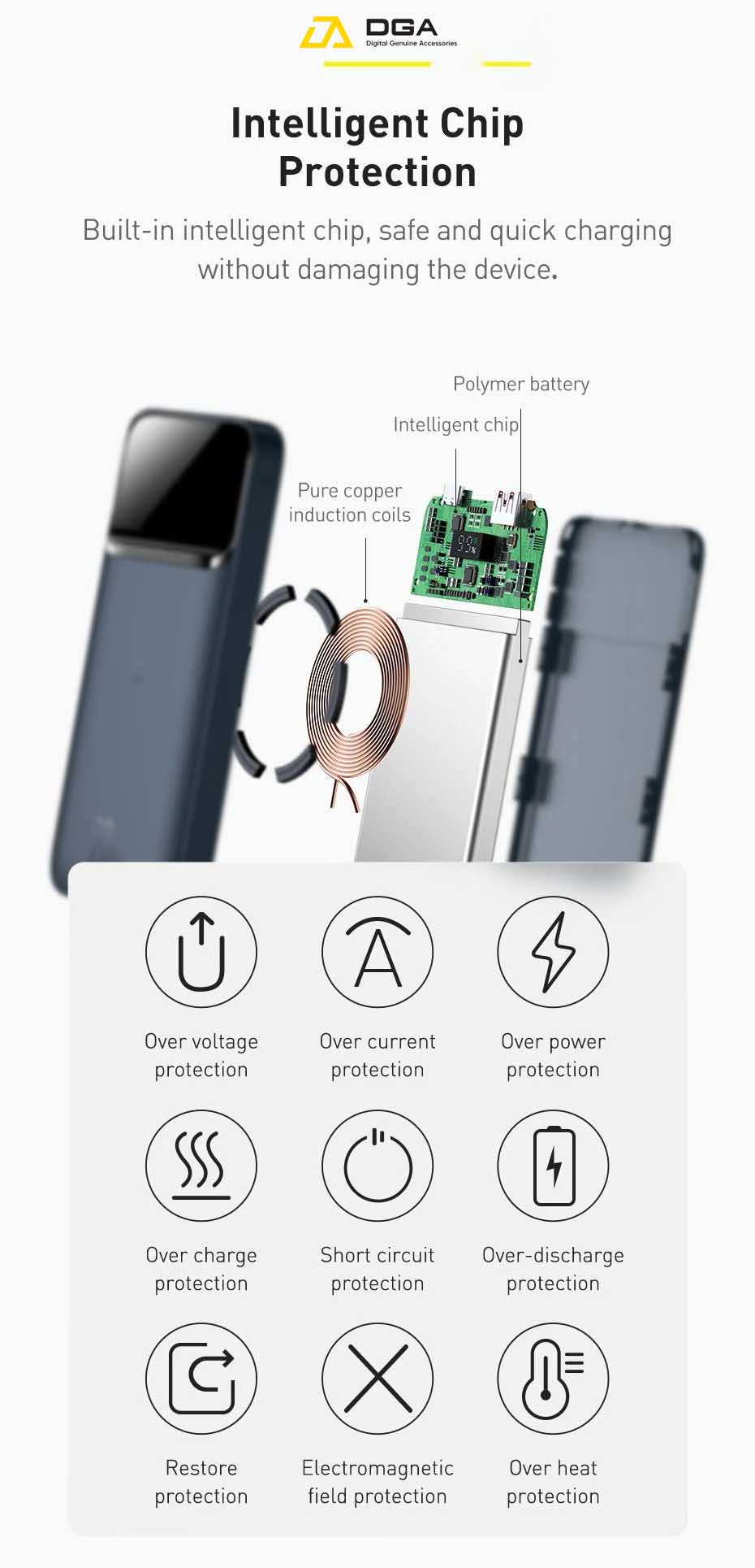 – Sạc dự phòng không dây Baseus với cuộn cảm ứng từ chuẩn mới nhất cho hiệu suất cao hơn. Chip xử lý nguồn điện thế hệ mới nhất cho phép