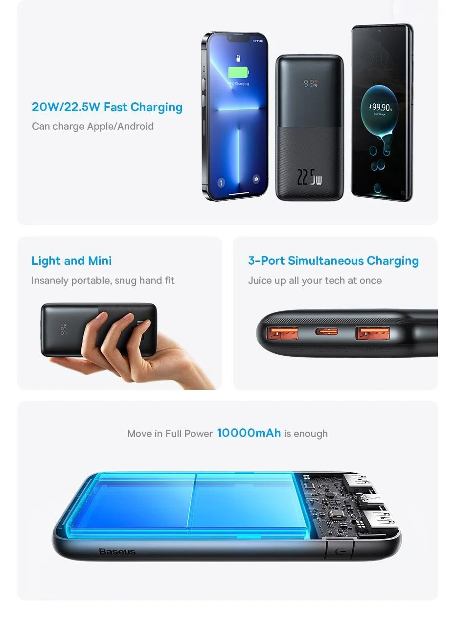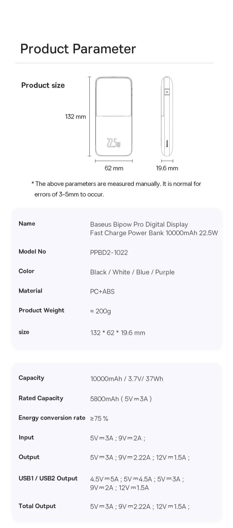 Hình Ảnh Sản Phẩm Pin Dự Phòng Sạc Nhanh Thế Hệ Mới Baseus Bipow Pro Digital Display Fast Charge Power Bank 10000mAh 22.5W/ 20W