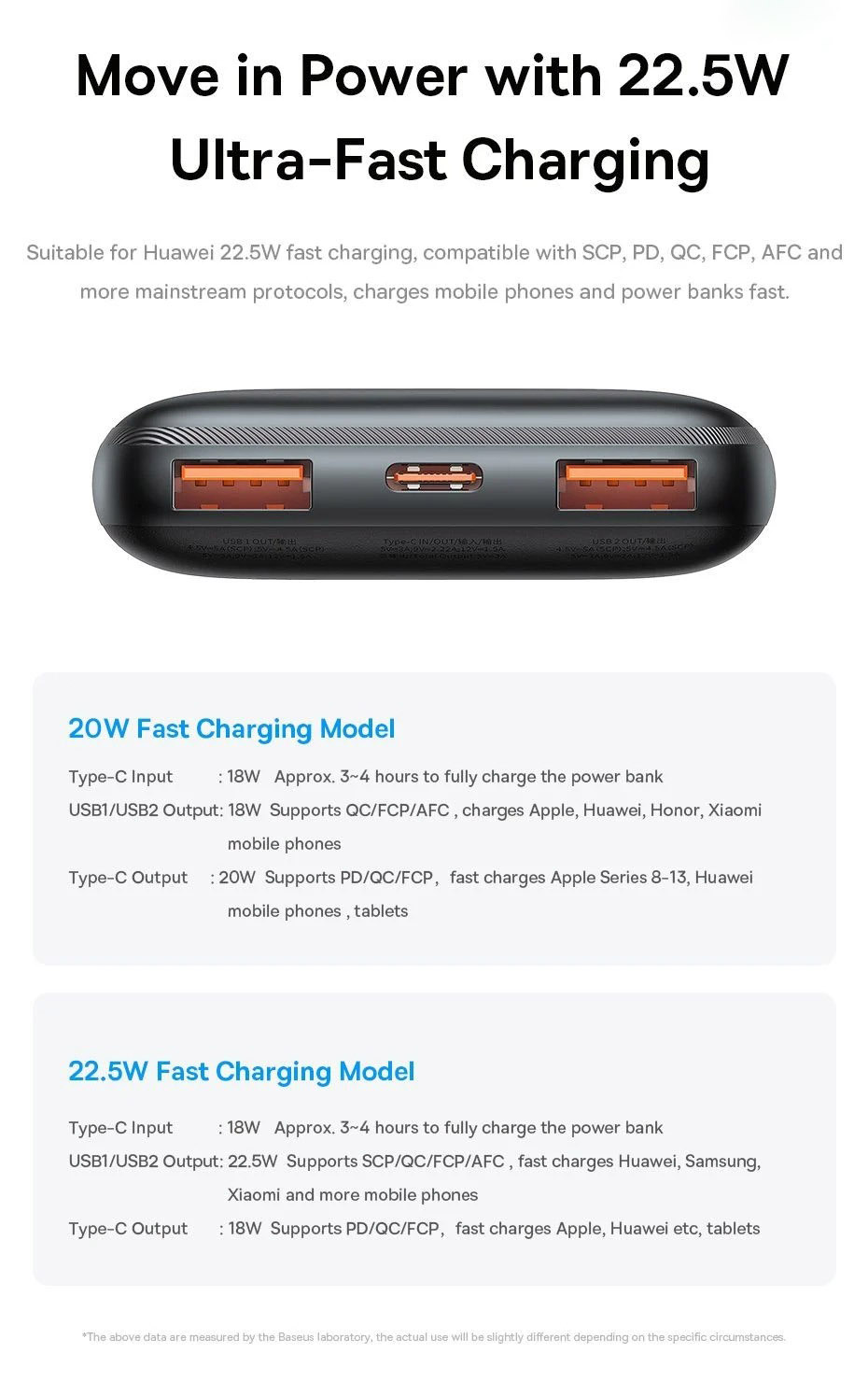 - Sạc Dự Phòng Sạc Nhanh Thế Hệ Mới Baseus Bipow Pro có dung lượng 10,000mAh/ 20,000mAh , cống suất 20W/ 22.5W hỗ trợ hầu hết các chuẩn sạc nhanh hiện nay, tương thích với hầu hết các thiết bị số hiện nay từ Smartphone/ Tablet/ iPhone / iPad (có hỗ trợ sạc pin qua cổng Type C Power Delivery)...