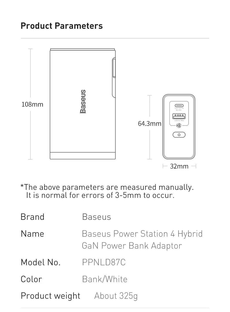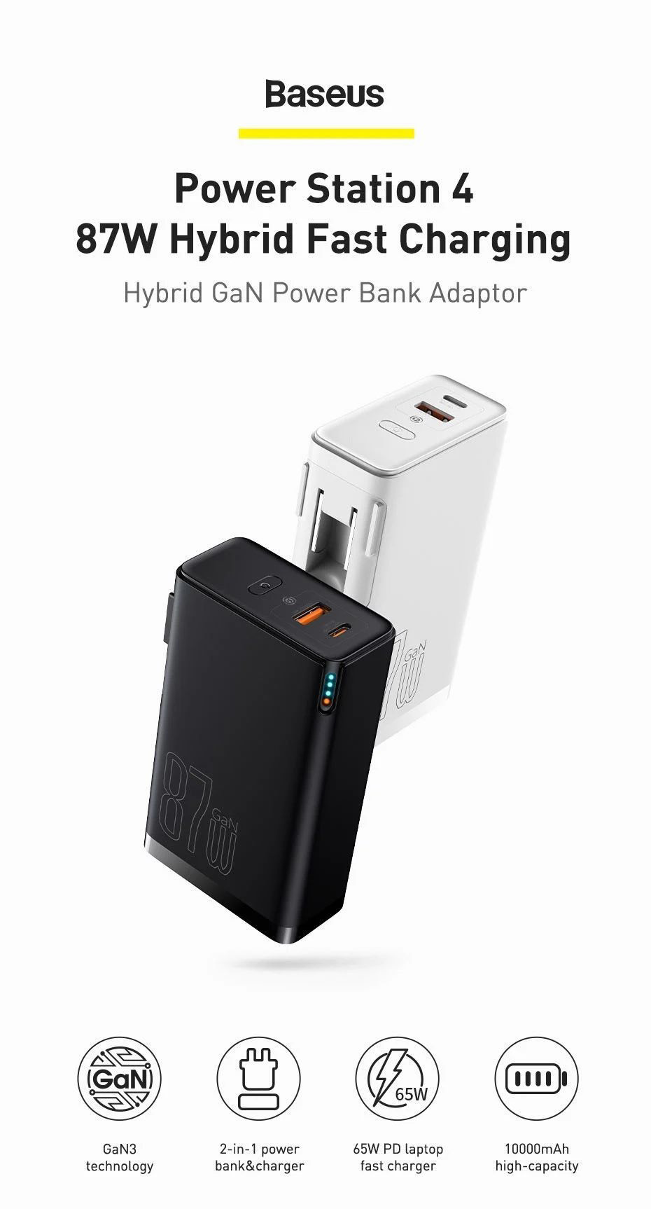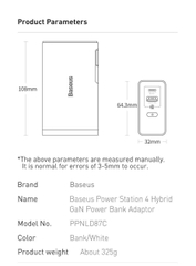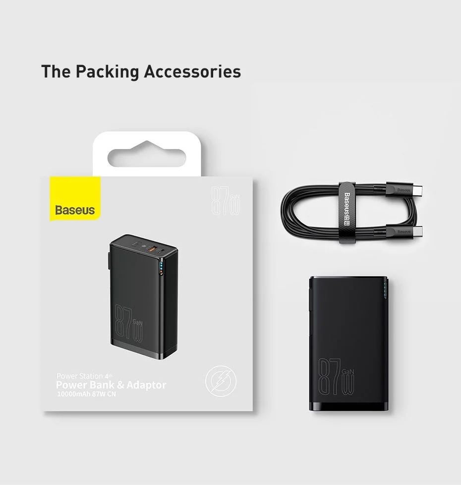 GIỚI THIỆU Sạc dự phòng tích hợp cóc sạc Baseus Power Station 4 Hybrid GaN công suất 10000mAh 87W Power Bank Adaptor