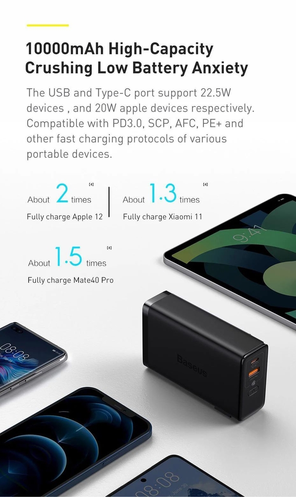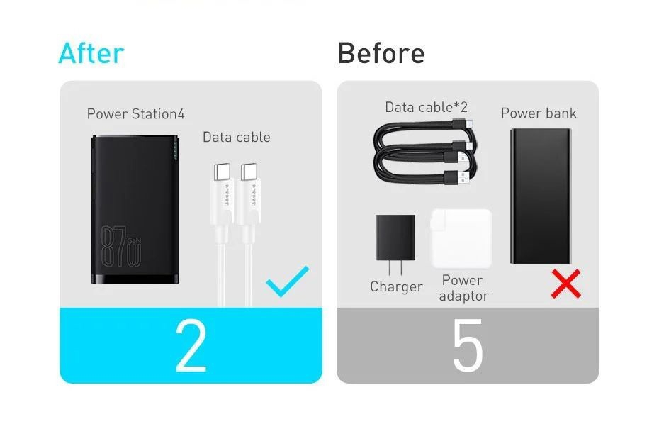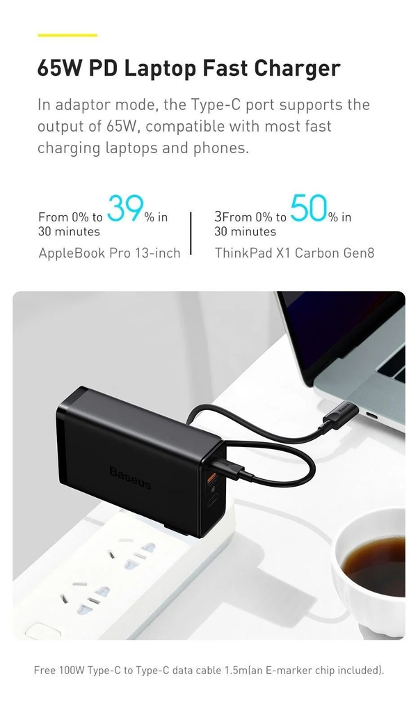 – Sạc dự phòng tích hợp cóc sạc công suất 10000mAh 87W Baseus Power Station 4 Hybrid GaN Power Bank Adaptor Siêu Nhanh luôn nằm top sản phẩm bán chạy nhất vì độ tiện lợi , vừa làm củ sạc kiêm pin dự phòng giúp chúng ta tiết kiệm không gian khi đi du lịch , văn phòng không phải đem theo quá nhiều sản phẩm , vẫn đảm bảo đầy đủ nhu cầu cần thiết