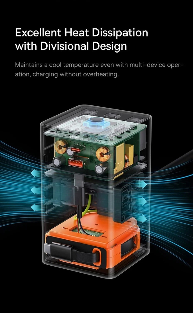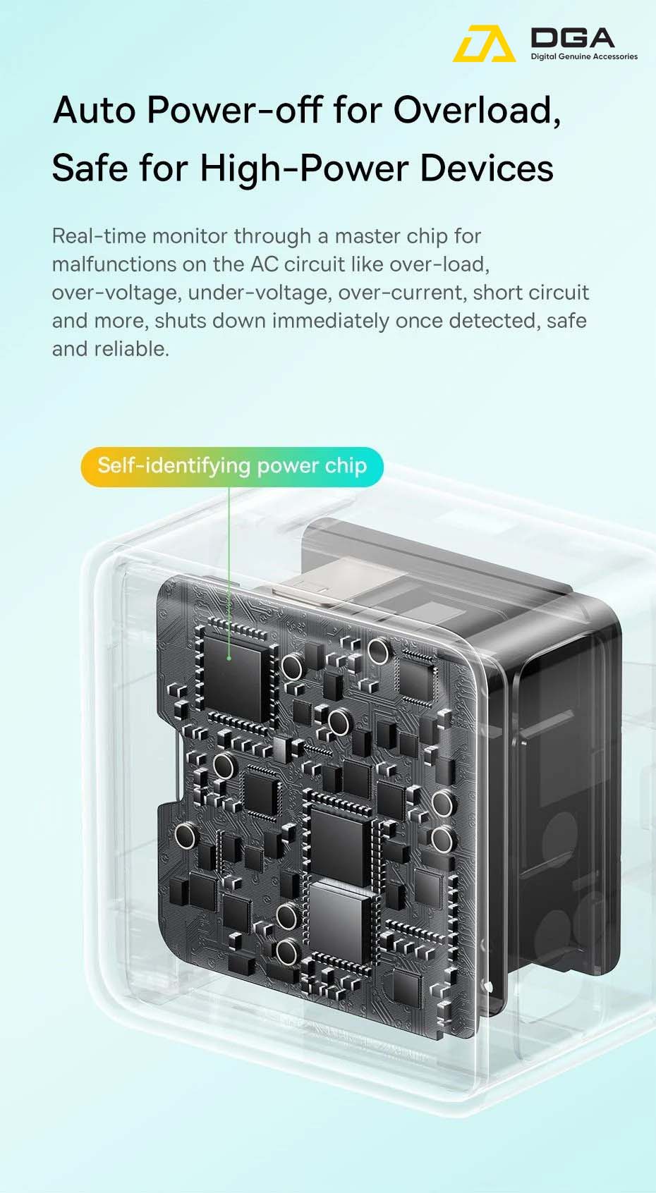 - Sản phẩm hỗ trợ cổng sạc USB và Type C phổ thông, hỗ trợ sạc nhanh. Công nghệ xử lý nguồn hiện đại (GaN5 Technology) tự động nhận diện thiết bị và điều chỉnh dòng điện và điện áp phù hợp ( auto Voltage ) . Dây nguồn nối dài và ổ cắm 3 AC hỗ trợ công suất tối đa 2500W, đảm bảo sử dụng an toàn cho các thiết bị dùng điện AC như : Đèn, Quạt, Laptop, Màn hình, Bộ sạc, Router wifi, Sấy tóc....