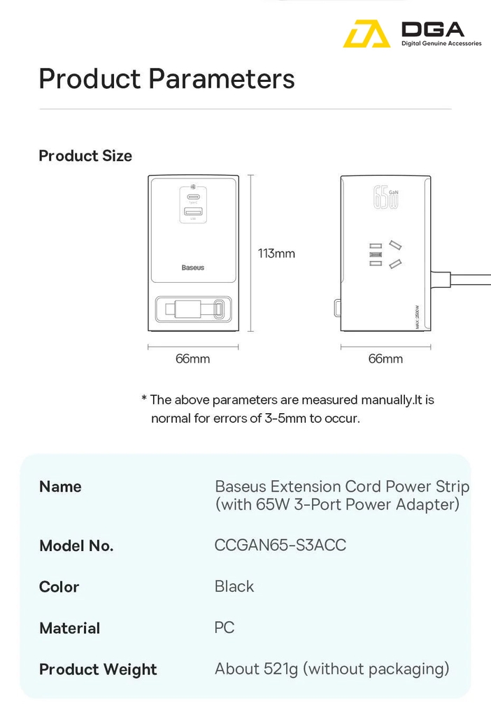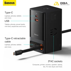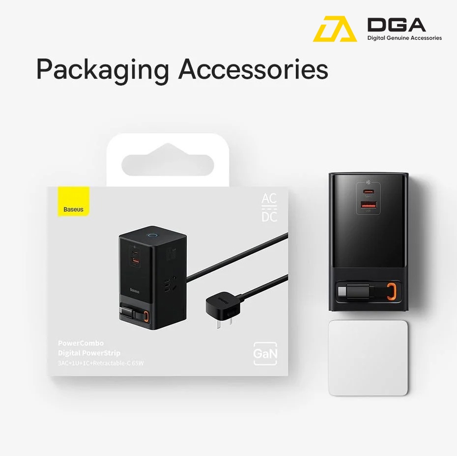 Hình Ảnh Bộ Sạc Nhanh Tích Hợp Dây Nguồn Nối Dài Baseus PowerCombo Digital PowerStrip 3AC+1U+1C+Retractable-C 65W
