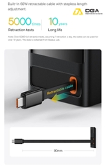 Tích hợp sẵn bên trong một sợi cáp sạc siêu nhanh 65W có thể kéo ra với độ dài tối đa 80mm, rút lại vô cần tiện lợi với độ bền lên tới 5000 lần kéo, tuổi thọ 10 năm.