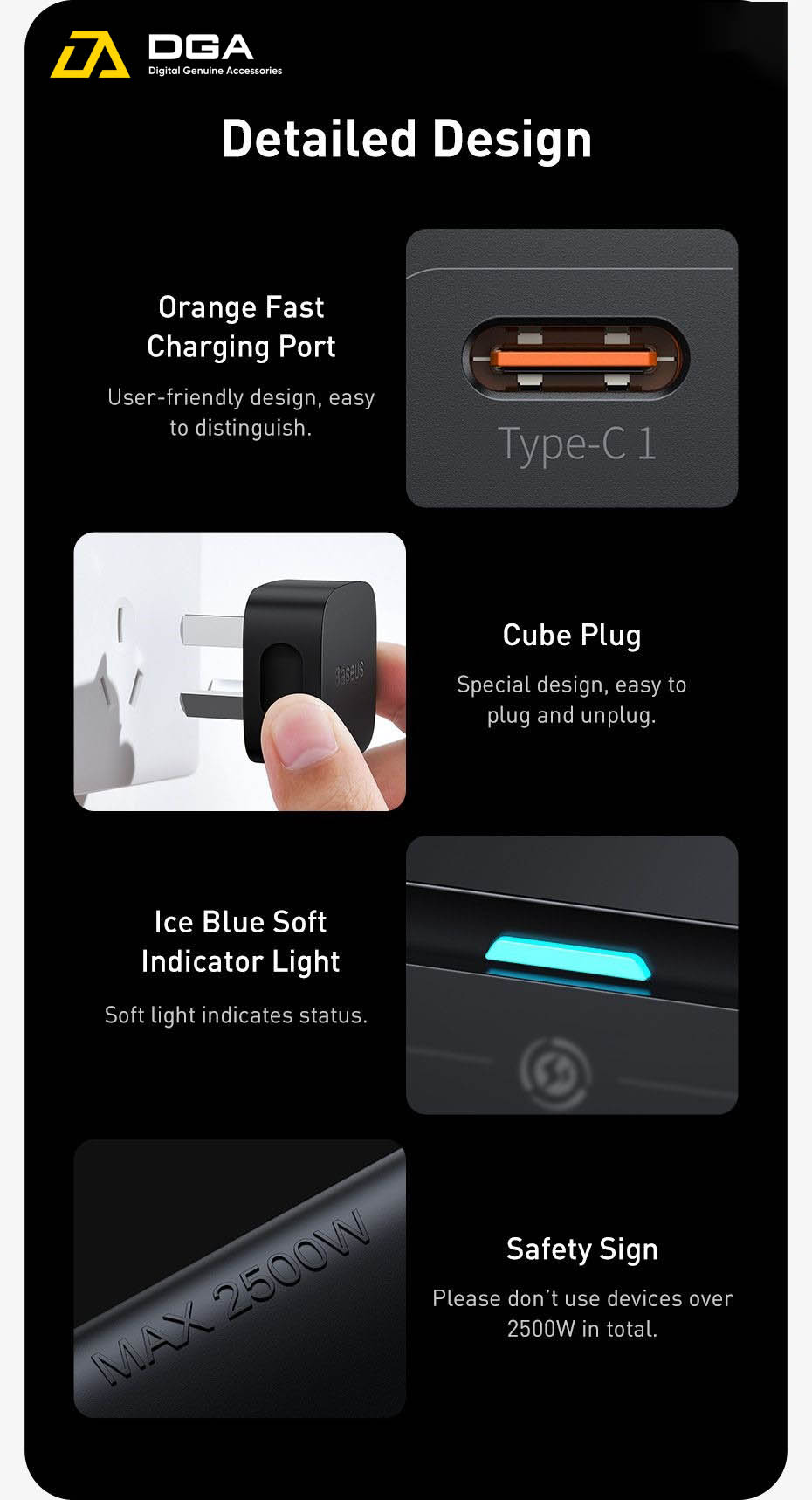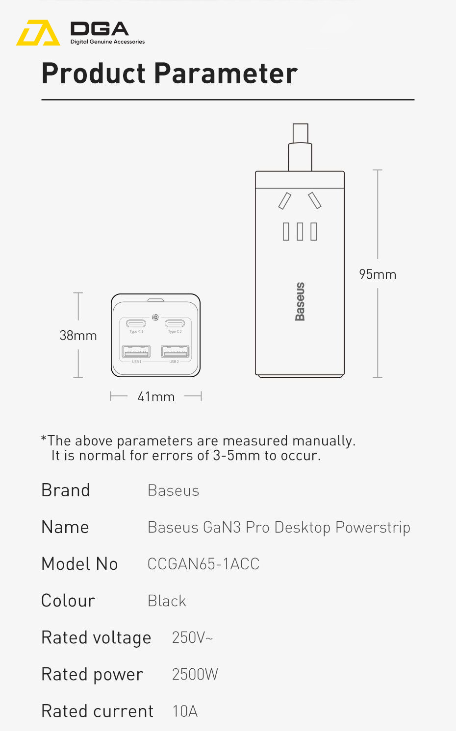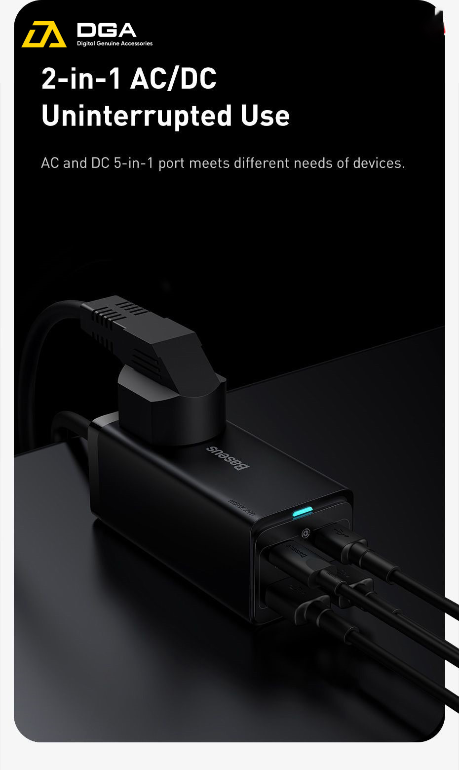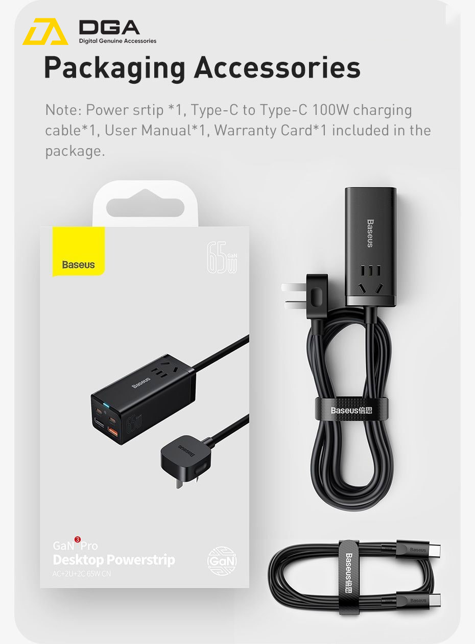 Tính năng cơ bản Sạc Nhanh Baseus 65W GaN3 Pro Desktop Powerstrip 5 in 1 AC 100V-240V