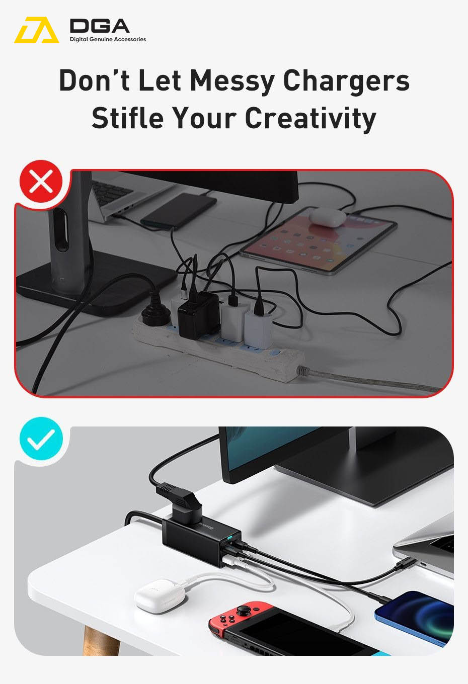 Vậy thì sạc Baseus 65W GaN3 Pro Desktop Powerstrip 5 in 1 AC 100V-240V sẽ là câu trả lời hoàn hảo nhất dành cho bạn, với cùng một khoảng thời gian và chỉ một ổ cắm điện là mọi thiết bị của bạn đều được nạp năng lượng.