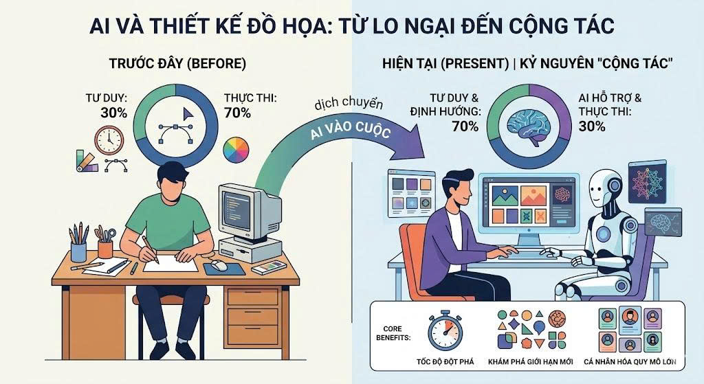 AI và Thiết kế đồ họa: Từ nỗi lo bị thay thế đến kỷ nguyên "Cộng tác"