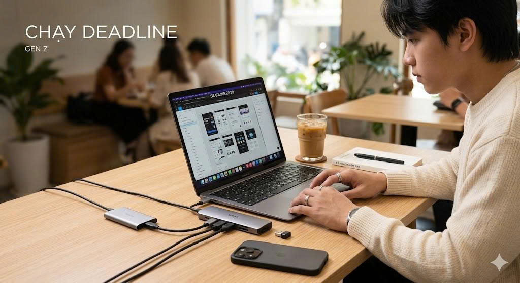 Trong kỷ nguyên của những "Digital Nomad" (người du mục kỹ thuật số) và lối sống Hybrid Working, hình ảnh một bạn trẻ ngồi bên chiếc laptop tại quán cafe, miệt mài gõ phím giữa tiếng nhạc lo-fi đã trở nên quá quen thuộc. Thế nhưng, phía sau vẻ ngoài thong dong đó thường là một cuộc chiến ngầm với đống dây cáp, cổng kết nối hạn hẹp và nỗi lo hết pin đột ngột.