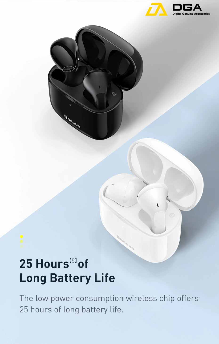– Dung lượng pin khủng cho thời gian nghe lên đến 25 giờ.
