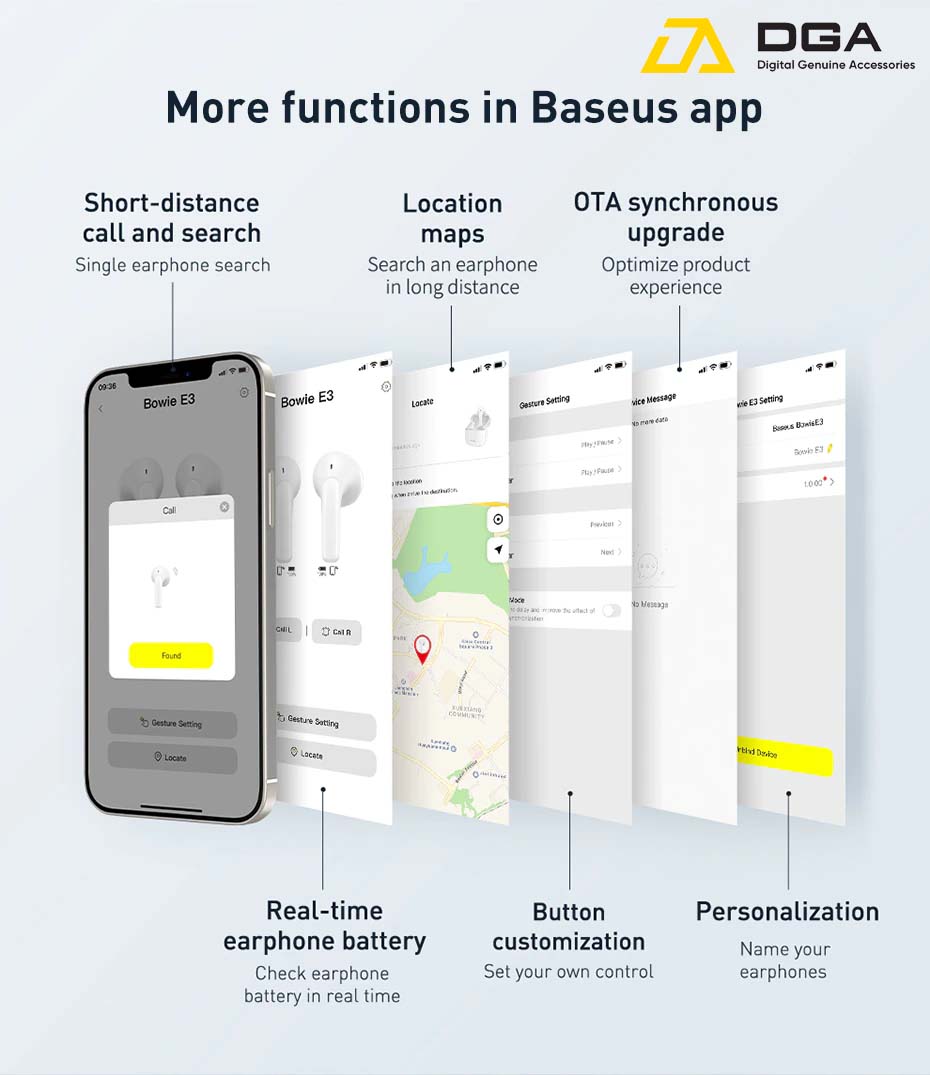 Tai nghe Bluetooth Earphones Bowie E3 True Wireless Earbuds ( Bluetooth 5.0 , GPS – APP Control, Super Fast charge, Nearly No-delay & HD Stereo Gaming Earbuds )