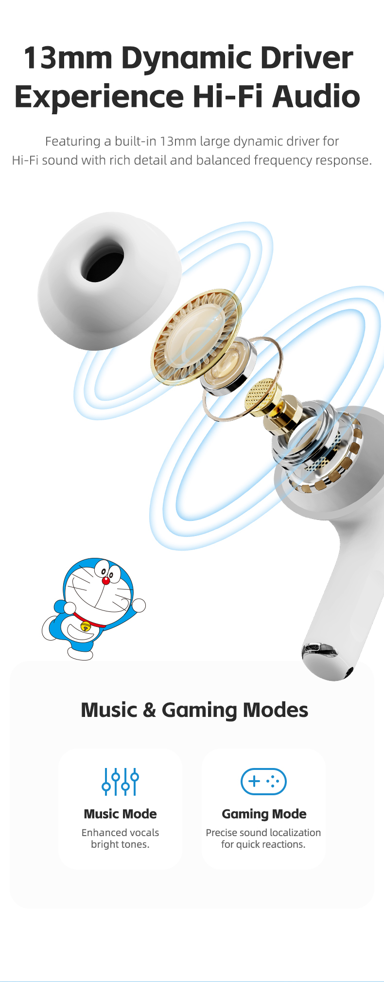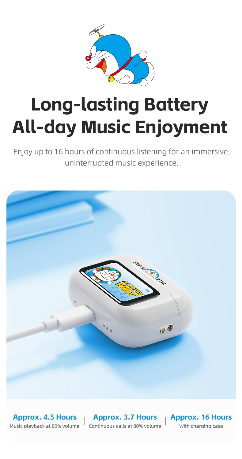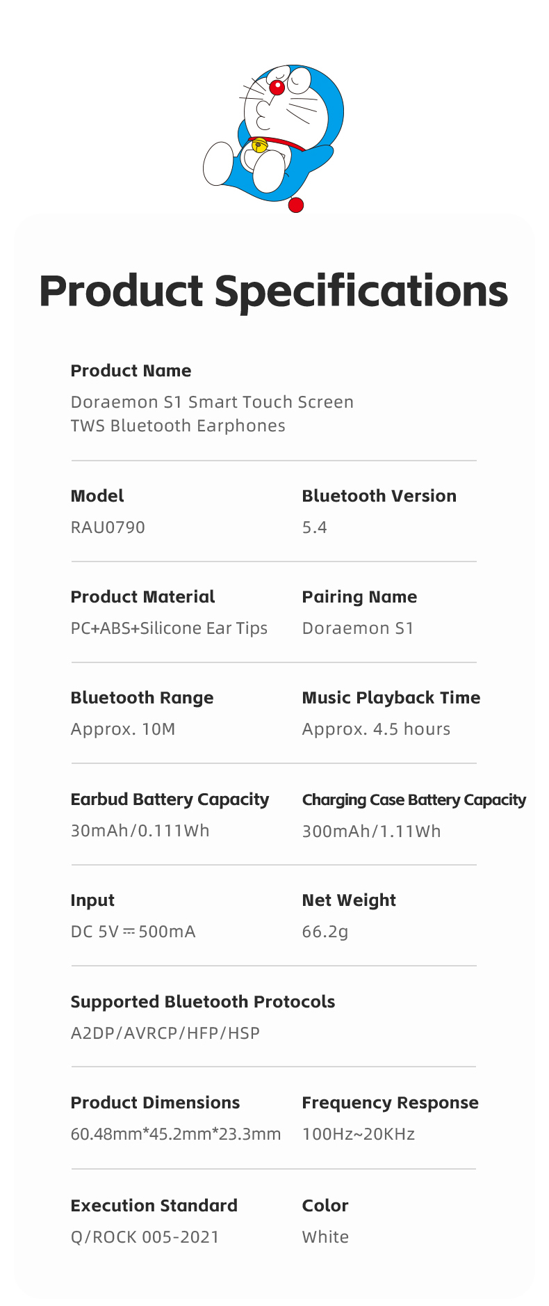 Tai nghe Bluetooth TWS ROCK Doraemon S1 Smart Touch Screen – Công Nghệ Hiện Đại, Cá Tính Doraemon Chính Hãng