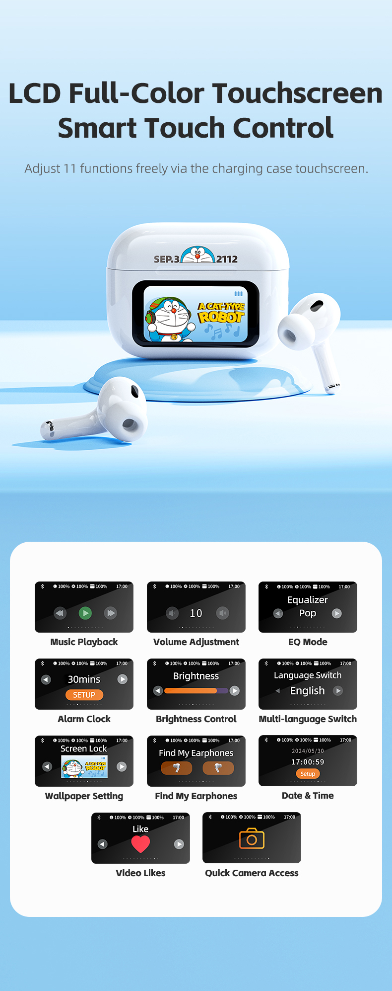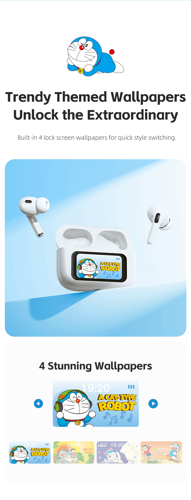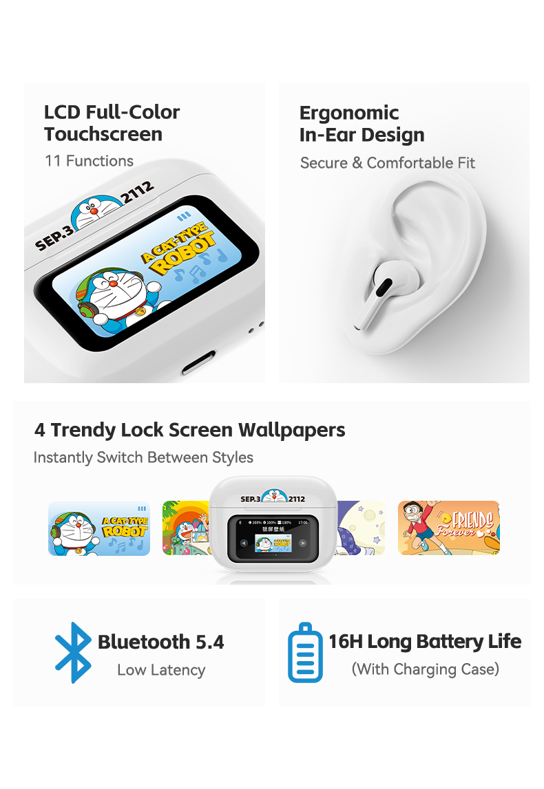Tai nghe Bluetooth TWS ROCK Doraemon S1 Smart Touch Screen không chỉ là thiết bị công nghệ, mà còn là phụ kiện thời trang “độc quyền” giúp bạn khác biệt với phong cách Doraemon cá tính. Màn hình LCD màu cảm ứng, chất âm Hi-Fi, thời lượng pin vượt trội, điều khiển thông minh – tất cả tạo nên một sản phẩm đáng sở hữu cho người dùng trẻ năng động, yêu sự mới lạ và tiện dụng.