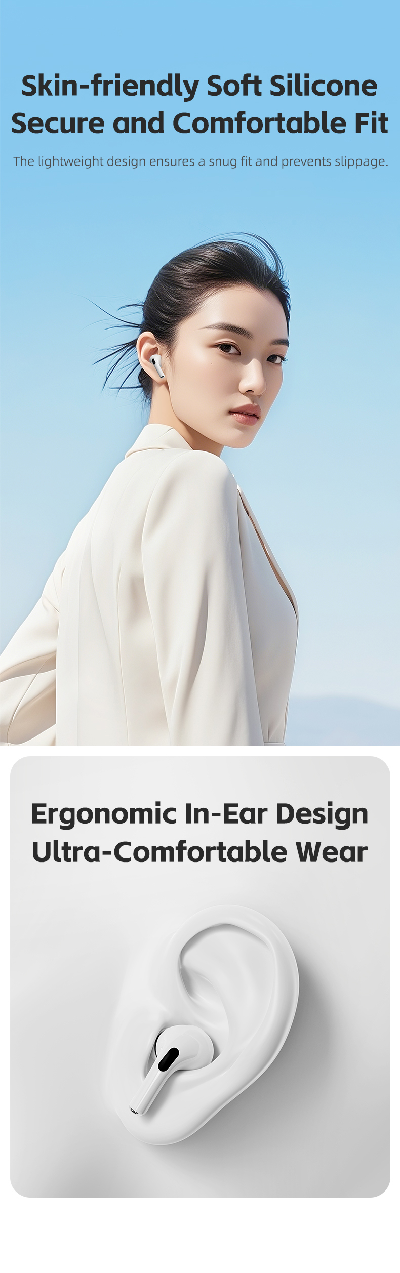 Toàn bộ kết cấu từ nhựa PC+ABS cao cấp, tip tai bằng silicon mềm, chống đau tai trong quá trình đeo lâu