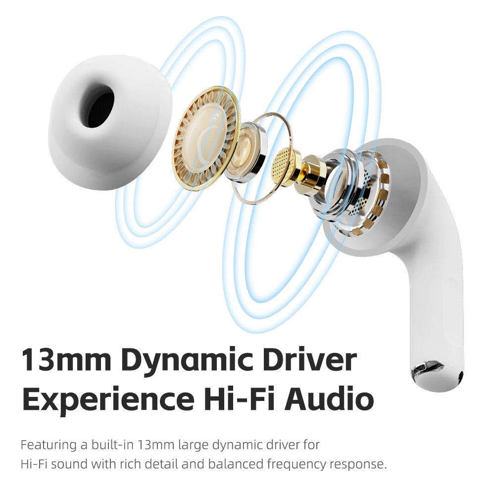 Tai nghe sở hữu Driver dynamic 13mm – lớn hơn phần lớn TWS cùng tầm giá, cho âm trầm đầy đặn, dải trung rõ, treble sáng chi tiết.