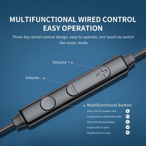 Thiết kế điều khiển có dây ba phím, dễ vận hành, một chạm để chuyển chế độ nghe nhạc.