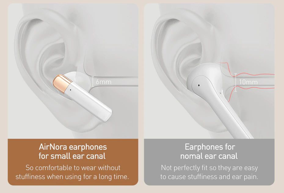 Encook W2 có kích thước cực kỳ nhỏ chỉ 6mm giúp cho tai thông thoáng và không bị đau tai khi nghe lâu.Tai nghe trọng lượng chỉ 4g. Kích thước siêu nhỏ khiến chúng trở nên tinh tế và dễ dàng mang theo
