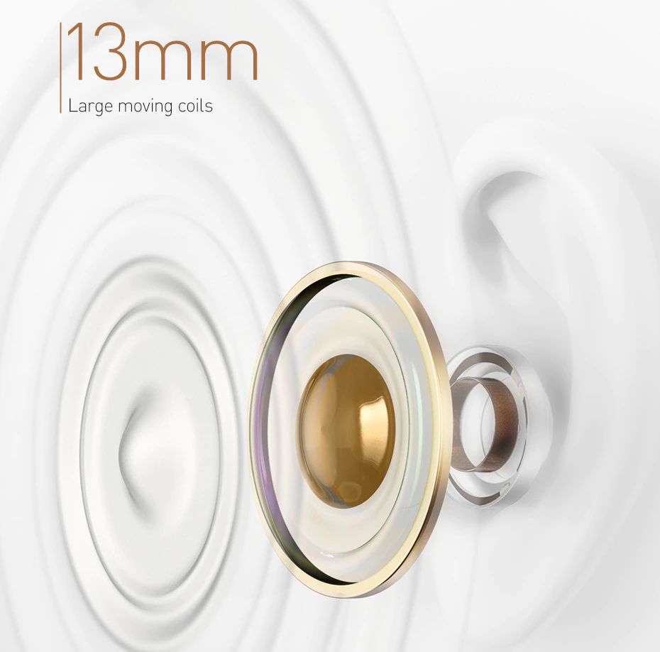 Loa lớn 13mm di chuyển cuộn dây và PU Titanium bọc Composite màng tạo ra một trường âm rộng và cung cấp rõ ràng tần số cao, phong phú trung bình-tần số giúp thiết bị có thể nghe được nhiều thể loại nhạc khác nhau.Model còn được trang bị ENC khử tiếng ổn 90% nghe rõ ràng các cuộc gọi ở những môi trường ồn ào nhất , giúp âm thanh không bị vang trở lại.
