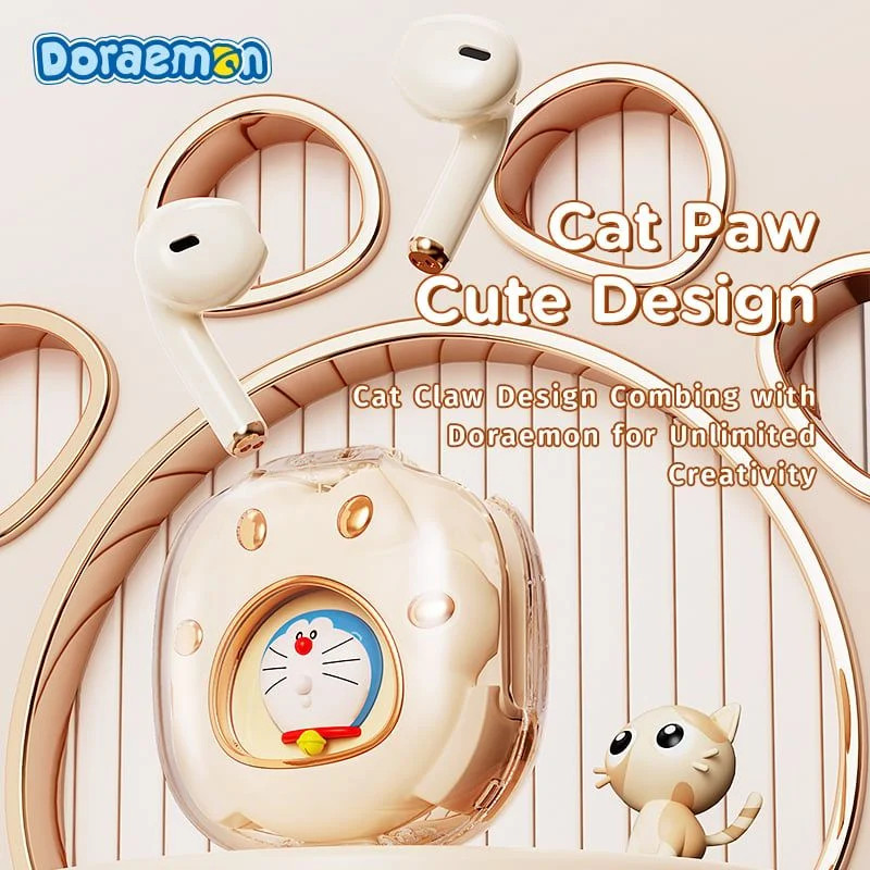 Với thiết kế lấy cảm hứng từ Doraemon và bàn chân mèo, tai nghe này mang đến một vẻ ngoài đáng yêu và độc đáo, làm hài lòng cả những người yêu thích truyện tranh.