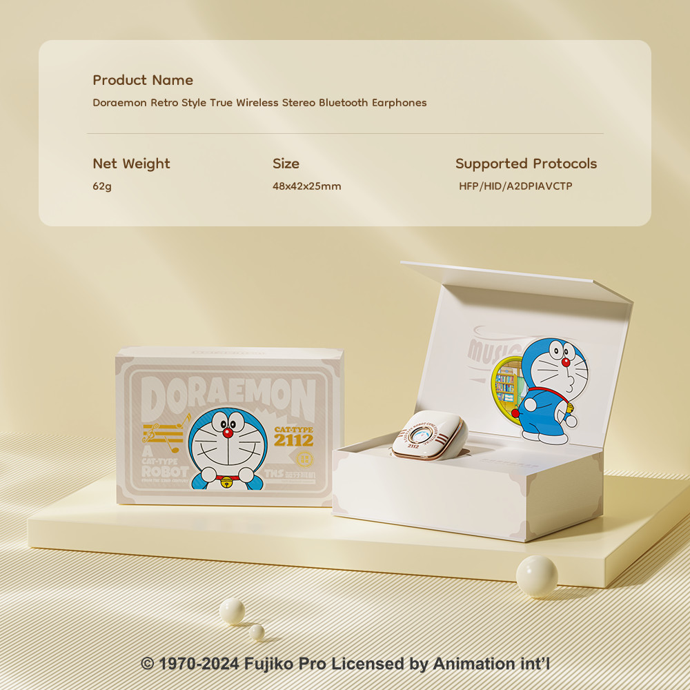 TÍNH NĂNG TAI NGHE KHÔNG DÂY ROCK DORAEMON RETRO STYLE TWS EARPHONES (PASS LOOP, DORAEMON AUTHENTIC LICENSED)