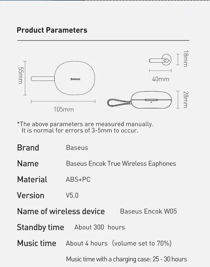 Tính năng cơ bản Tai nghe True Wireless Baseus Encok True Wireless Earphones W05