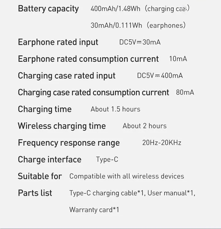 - Kén sạc: 400mAh (~4 lần sạc cho tai nghe)