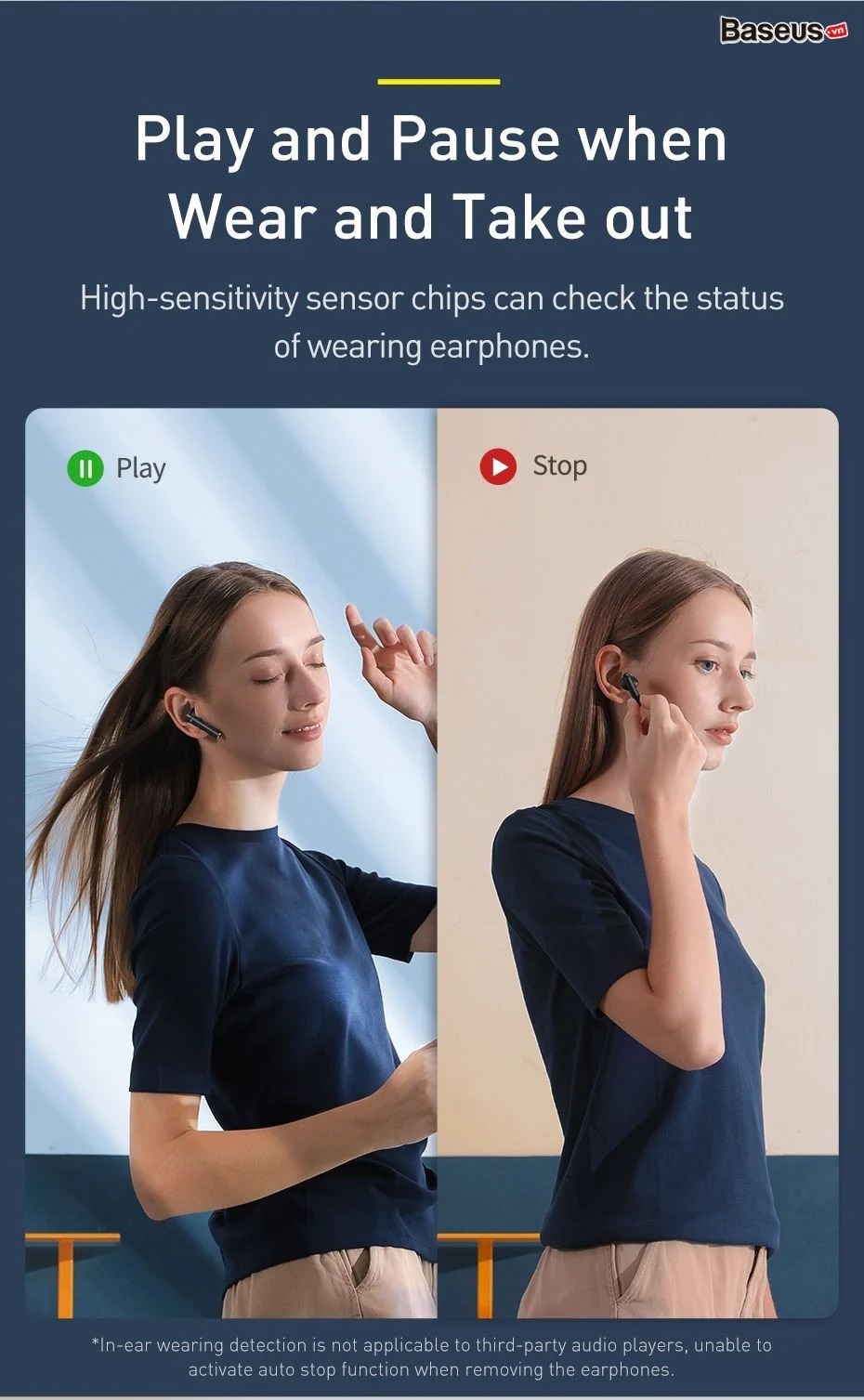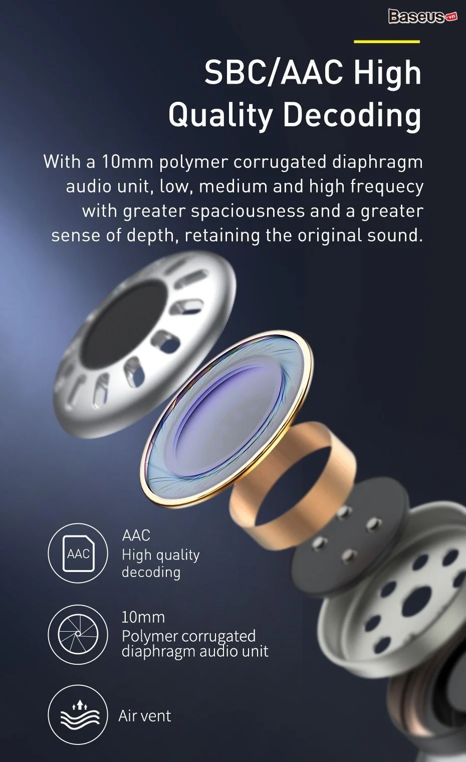 - Là phiên bản tai nghe True Wireless (TWS) mới nhất từ Baseus với những nâng cấp đáng kể về công nghệ như chip xử lý và giải mã âm thanh thế hệ mới nhất (SPS/AAC) cho chất lượng âm thanh chi tiết và sắc nét hơn , hỗ trợ kết nối không dây Bluetooth 5.0 ổn định và tiết kiệm pin hơn đồng thời sản phẩm còn được trang bị cảm biến tiệm cận giúp tự động phát hiện trạng thái đang đeo tai nghe để tạm dừng hoặc tiếp tục phát nhạt khi tháo/ gắn tai nghe ...