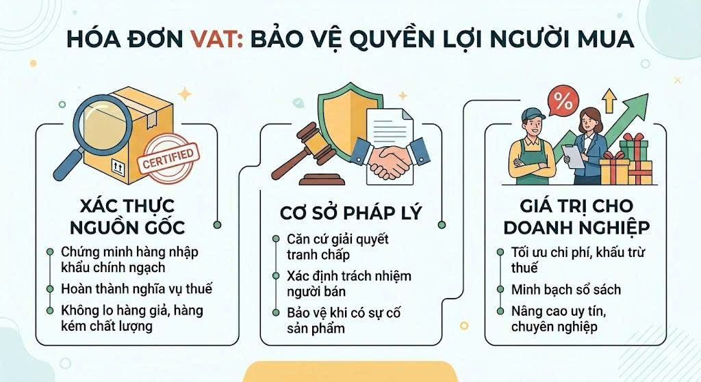 Nhiều khách hàng cá nhân thường từ chối lấy hóa đơn VAT vì nghĩ rằng nó chỉ cần thiết cho doanh nghiệp để khấu trừ thuế. Tuy nhiên, trong môi trường kinh doanh hiện đại, hóa đơn VAT là bằng chứng thép bảo vệ quyền lợi người mua.