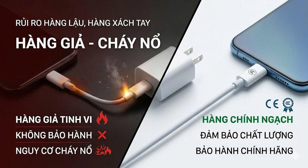 Hàng giả tinh vi: Công nghệ làm giả hiện nay có thể sao chép 99% ngoại hình. Chỉ khi sử dụng, bạn mới nhận ra hiệu suất sạc không đúng như quảng cáo hoặc sản phẩm nóng lên bất thường.