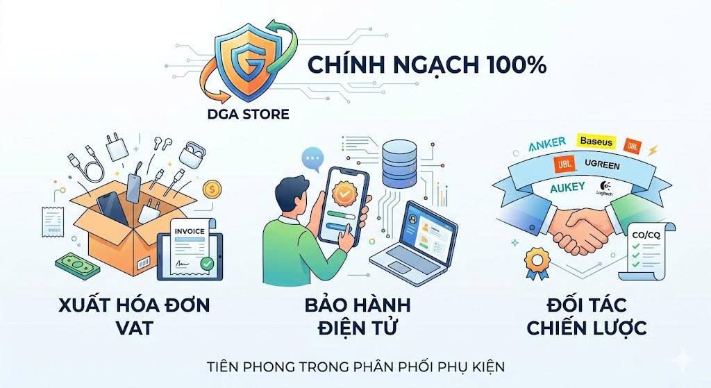 Trong thị trường phụ kiện công nghệ đầy biến động tại Việt Nam, người tiêu dùng thường đứng trước hai lựa chọn: hàng "xách tay" giá rẻ và hàng nhập khẩu chính ngạch có đầy đủ hóa đơn VAT. Dù mức giá có thể chênh lệch đôi chút, nhưng việc lựa chọn sản phẩm có nguồn gốc rõ ràng từ các đơn vị như DGA không chỉ là một giao dịch mua bán, mà còn là một "bảo hiểm" cho túi tiền và sự an toàn của chính bạn.