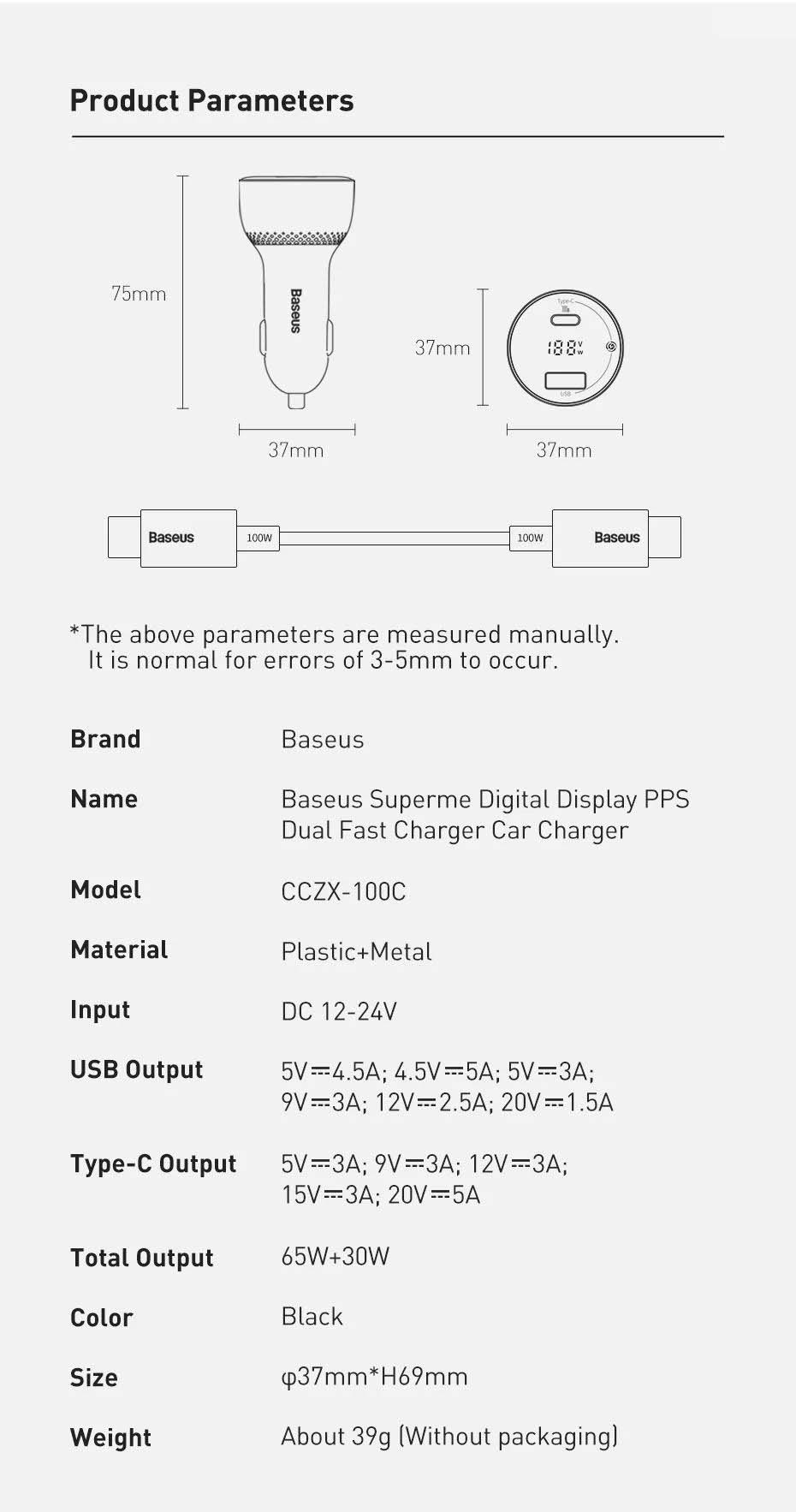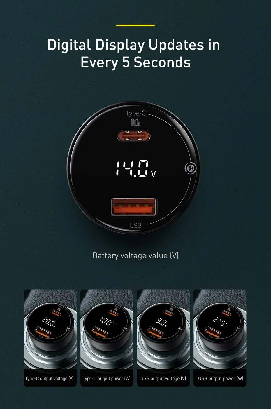 Tẩu sạc công suất cao 100W Superme Digital Display PPS Dual Quick Charger Car Charger (100W, 12V đến 24V)